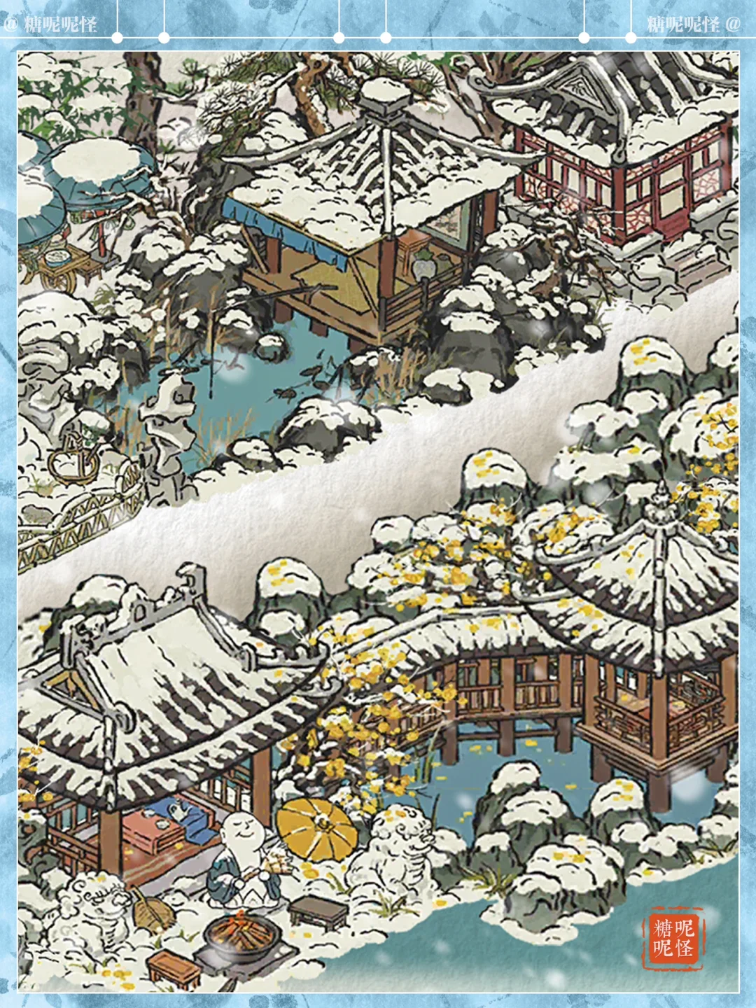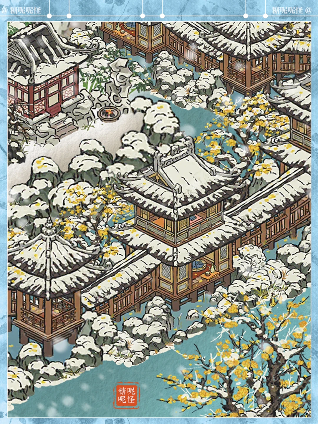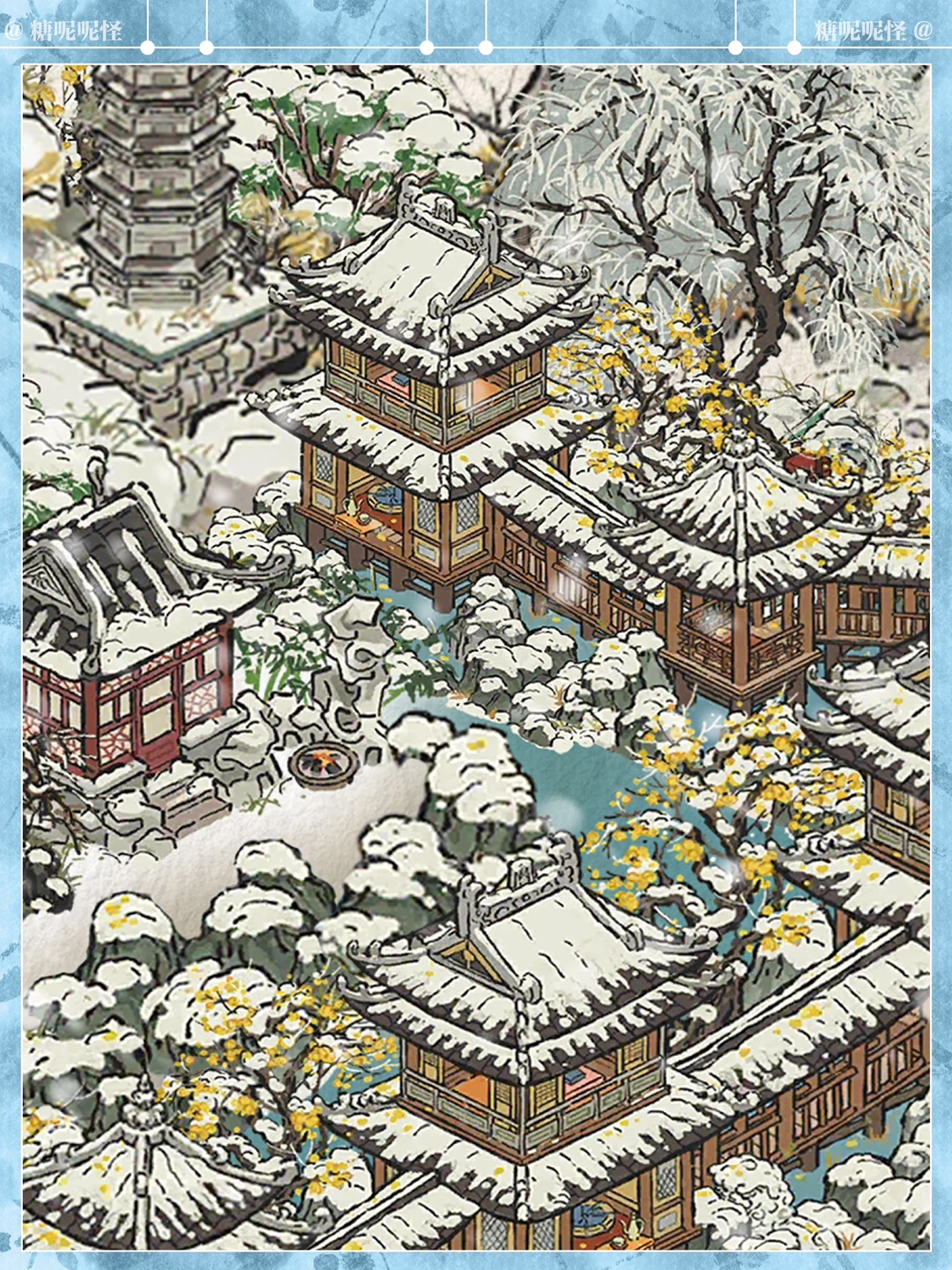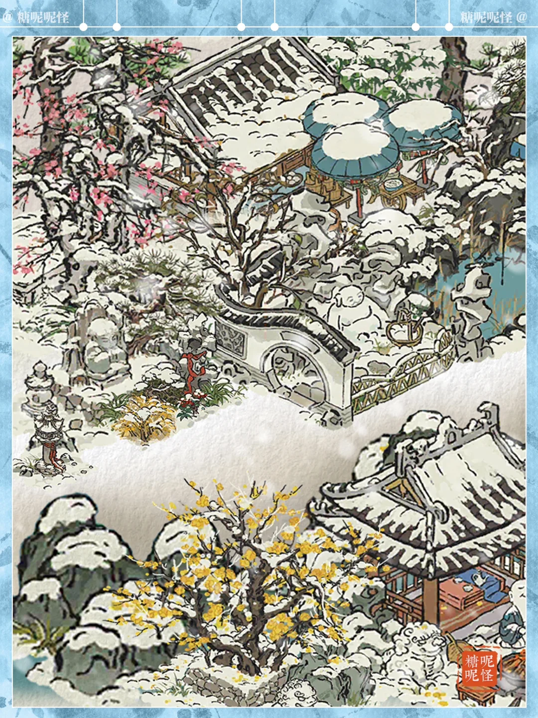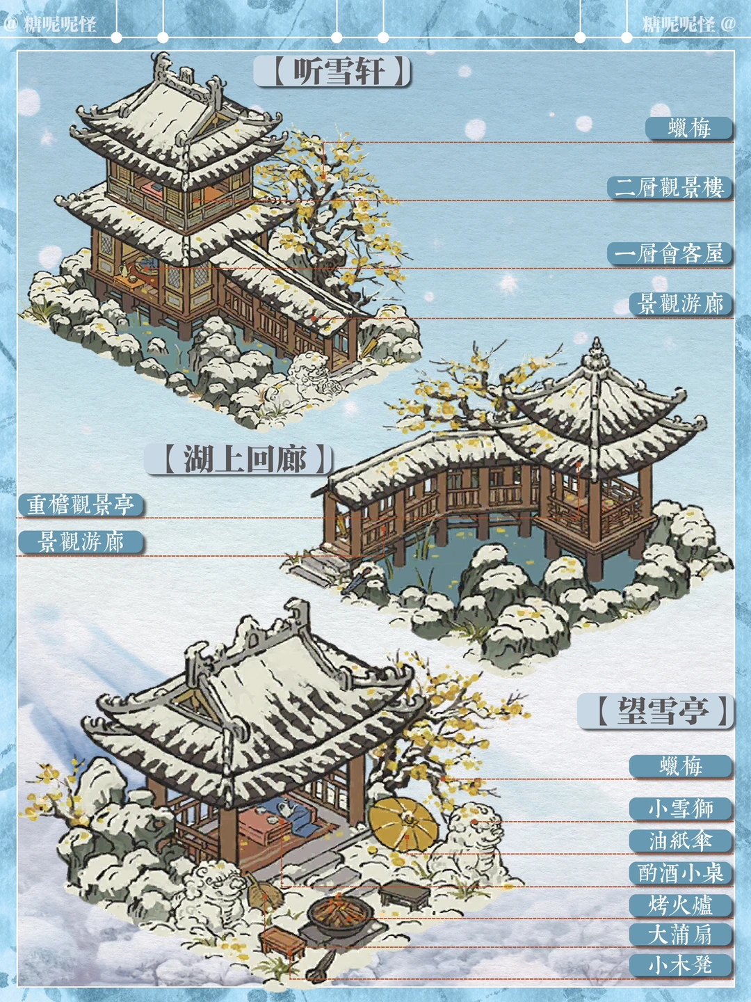 21年冬限简直就是一套啊,感觉是在原型的基础上,又创造了同种风格的另外两个建筑(湖上回廊+望雪亭) 真的好喜欢小破图的冬季建筑,希望后期多来点雪景的山就好了[哇R][哇R][哇R]