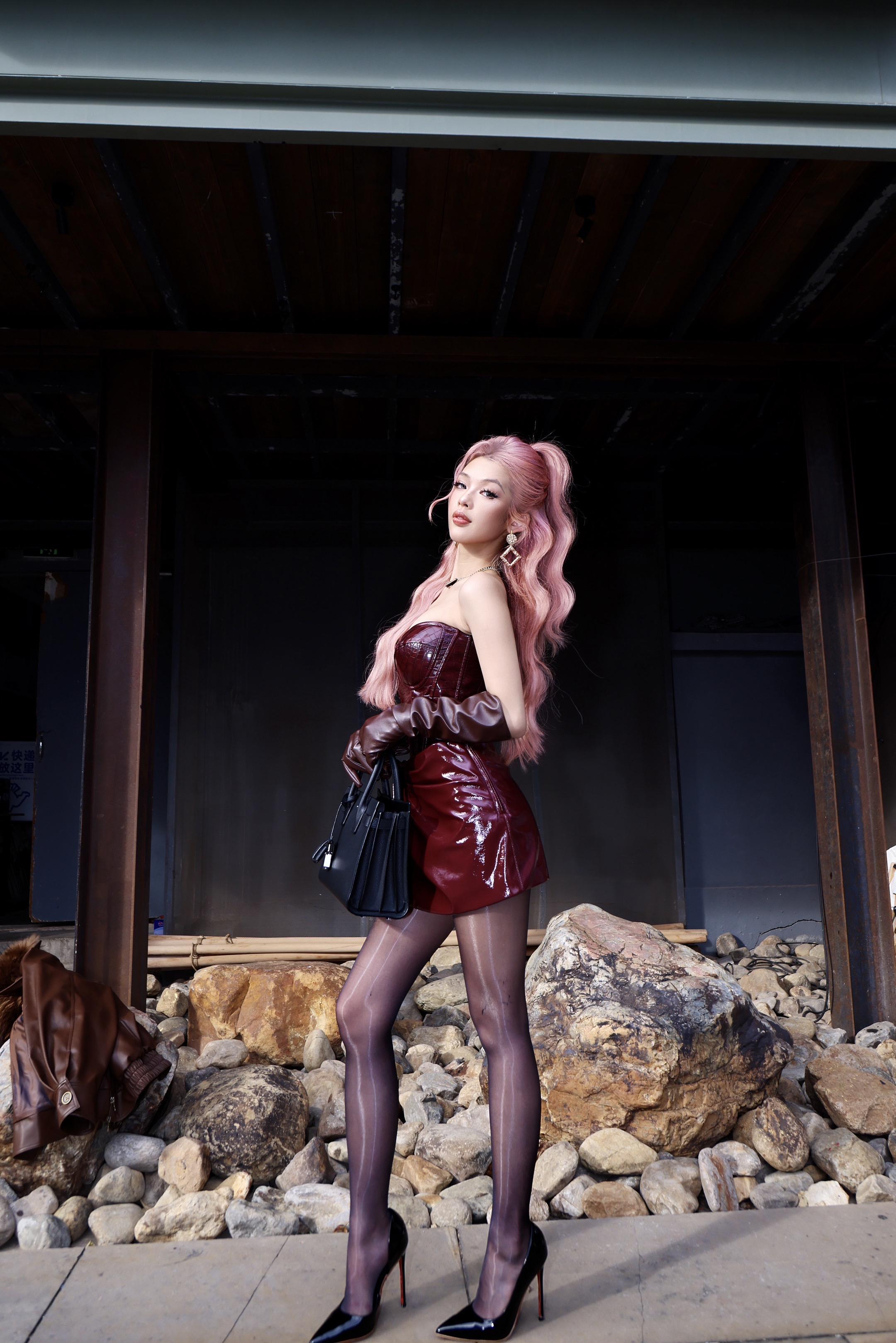 素衣裹身,红发撩人,于园林深处,藏一份不被打扰的矜贵