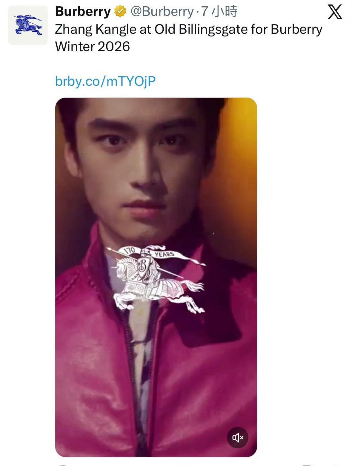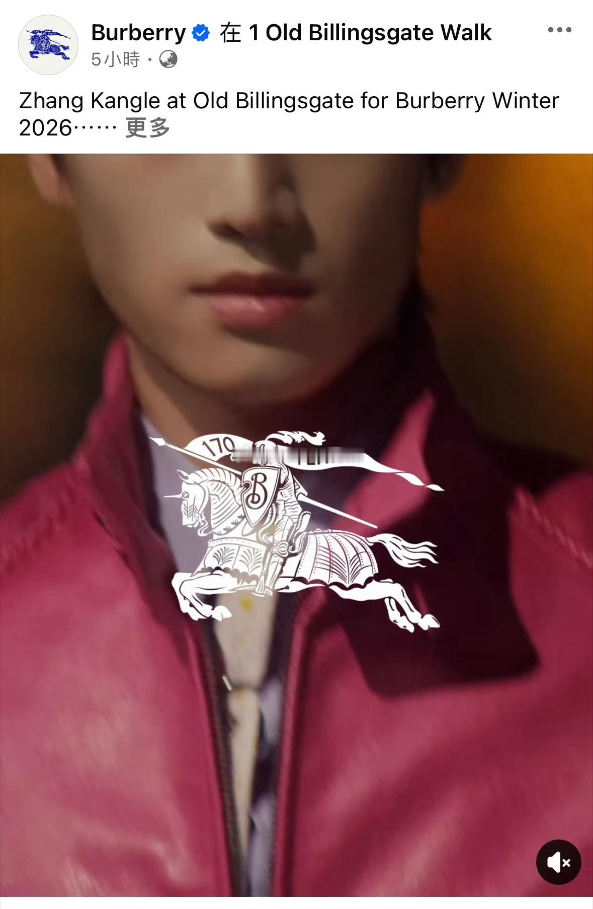Burberry ig、x、facebook全平台认领张康乐,每次奢牌待遇都很好,外网认领都是基操