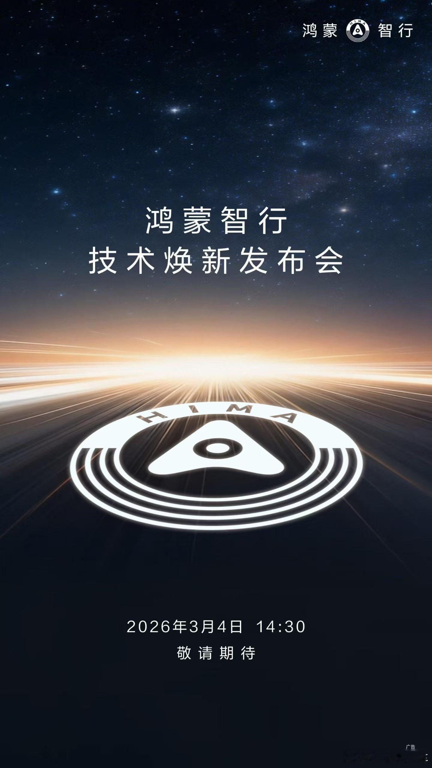 鸿蒙智行技术焕新发布会定档3月4日鸿蒙智行开年第一场发布会【技术焕新发布会】,预计会带来一系列与汽车相关的旗舰技术,同时整车的产品体验也会进一步提升,新年第一张牌应该是尊界S800;