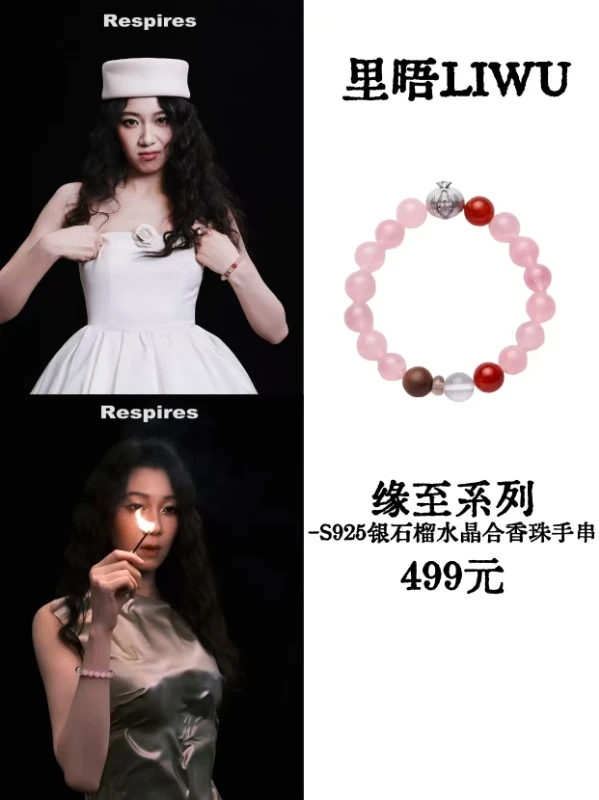 搭配里晤LIWU缘至系列粉水晶手串,清透的粉晶自带柔光滤镜,和白色裙装呼应得恰到好处,银石榴的光泽和玫瑰合香珠的温润,让甜妹感里多了一丝精致。