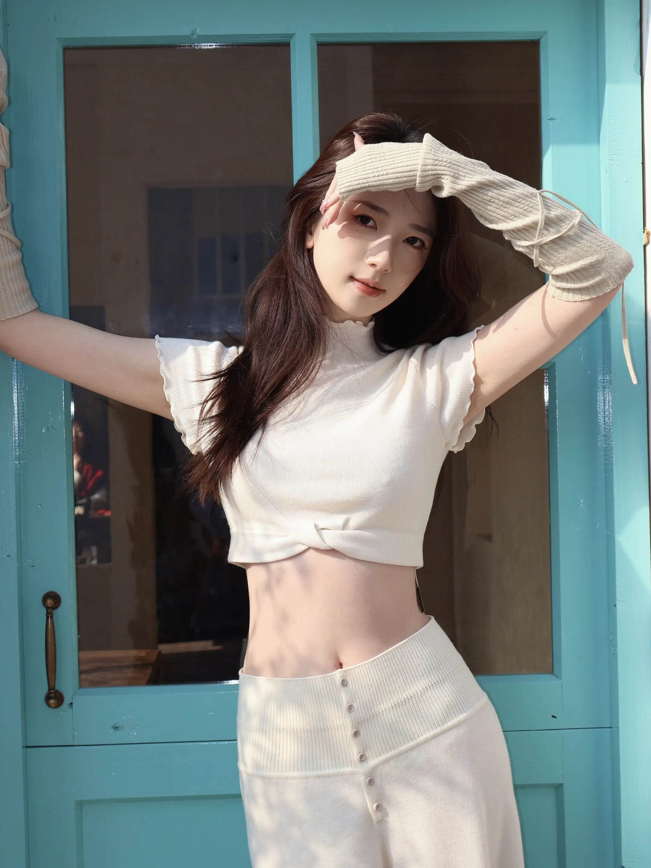 这套是“清新休闲的日常风”穿搭,基础款组合干净又耐看:-上衣选了白色印花