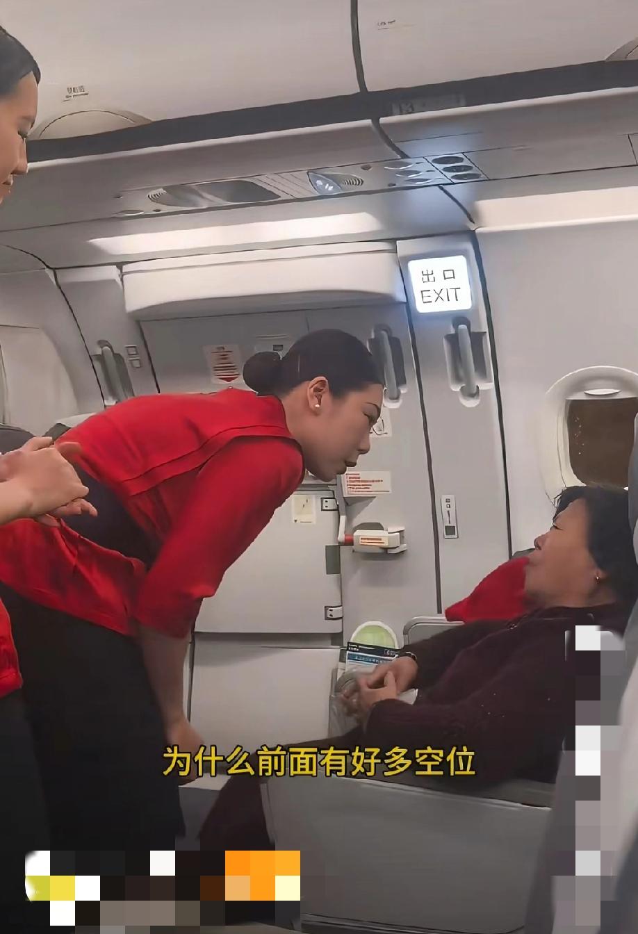 飞机上,这位大妈坐在紧急出口的位置上假寐,乘务人员生怕她不舒服,尝试着叫醒她,叫了很长时间才把她叫醒。乘务人员提醒她这是紧急出口位置,不能随意换过来的,大妈反问:“为什么前面这么多空的位置,当时为什么不给我们买前面的”,乘务人员反反复复跟她解释,就是说不通…… 视频最后,也没有交代大妈最后到底回没回自己的座位,碰上这样耍无赖的,乘务人员也是没法啊! 评论区诸位网友,你们怎么看这样的事情?