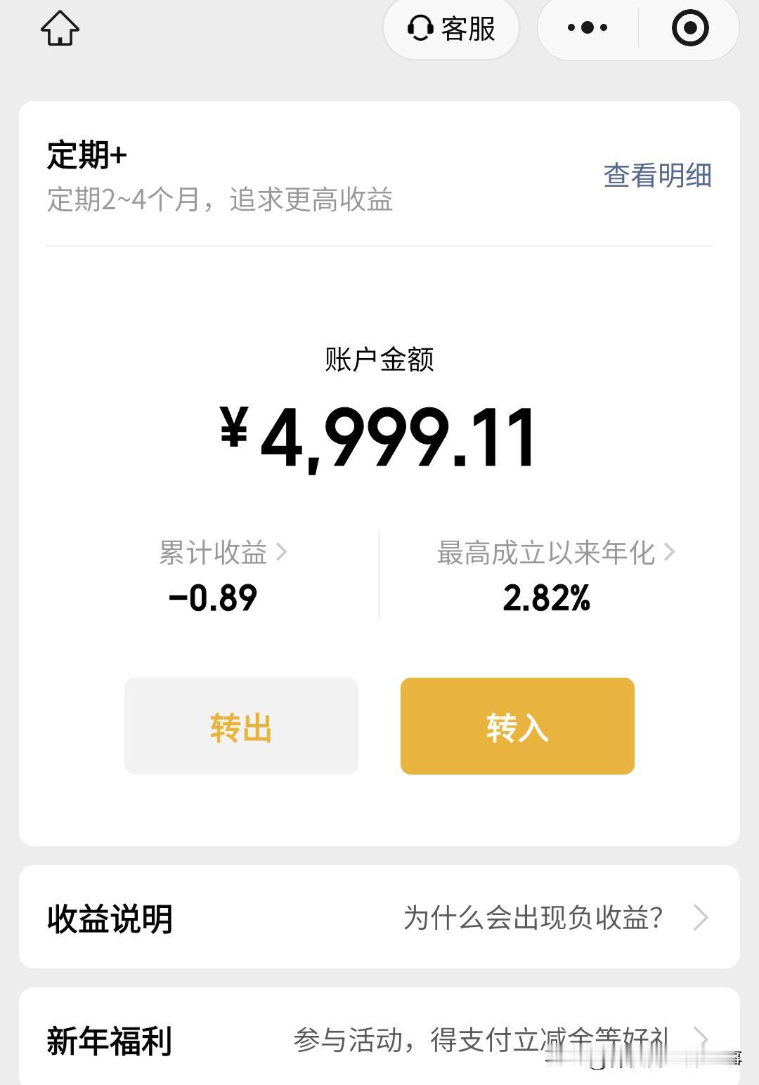 微信真的不能在打交道了,微信里面有点少,准备提现,结果提示我存钱有利息,抱着试一试的态度存进去五千块,结果一天就损失八九毛。 支付宝也放的有钱没有一天是负数,微信提现收费不说,存钱进去还要赔钱,这微信还能玩吗,真的是吸血蛀虫。