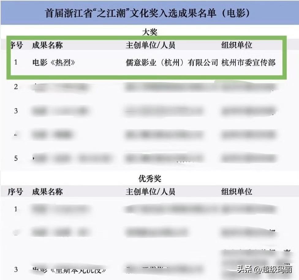 主演的电影《热烈》获浙江省“江之潮”文华奖大奖,热烈又双叒获奖了,这个奖门槛还不低,必须是获得过如“五个一工程”“金鸡奖”等国家级奖项才行[大金牙]