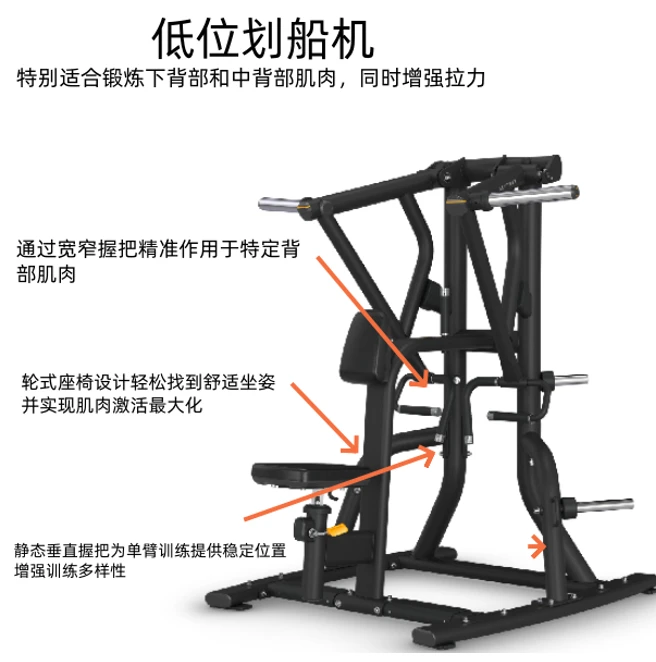 自由重量练不到的完全支撑式低位姿势,还原人体工学布局贴合发力角度,水平拉力专攻下背+中背,杜绝腰部代偿🚫 ,双握把+静态垂直握把,常规训练+单臂孤立都能练,棘轮式座椅随便调,高矮身材都能找到黄金发力点🌟