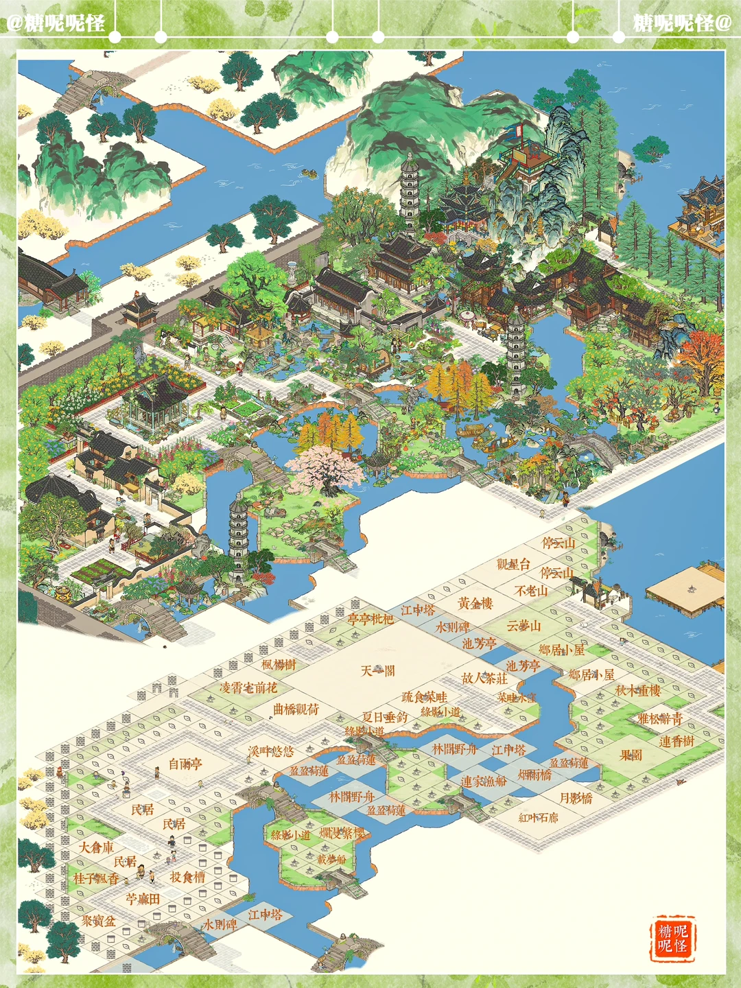1️⃣地点:宁波府九曲巷+石砌巷+天一巷 2️⃣建筑:天一阁|曲桥观荷|黄金楼|云梦山|自雨亭|凌霄宅前花|亭亭枇杷|枫杨树|故人茶庄|乡居小屋|池芳亭|夏日垂钓|疏食菜畦|溪畔悠悠|林间野舟|烟雨桥|江中塔|月影桥|烂漫繁樱|桂子飘香|聚宝盆|投食槽|盈盈荷莲|水则碑|观象台|不老山|停云山