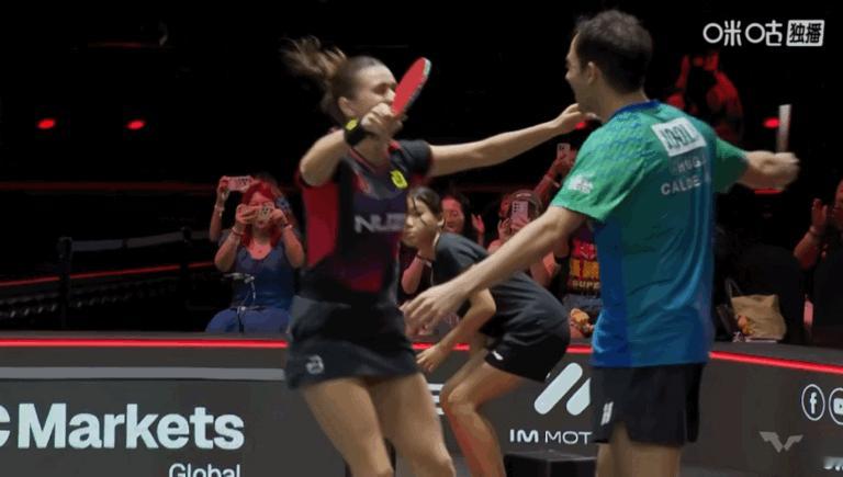 雨果高桥布鲁娜紧紧拥抱在一起,今天高桥杀疯了! 新加坡大满贯新的混双冠军产生:雨果,高桥布鲁娜。 3-0的比分,零封了申裕斌和林钟勋,这是大家没想到的。 今天的高桥,不是之前的高桥,眼神非常厉害, 三局发挥得非常好,带着雨果打, 第三局关键分,眼神看向雨果, 侯英超:眼神告诉你,你再拿不下,今天你就在这里吧! 雨果一局半,没敢喊,憋着一口气,也是很想赢下来。 2000的积分,基本上可以参加年底的总决赛了。 赛后,高桥跑向雨果,两个人拥抱庆祝。