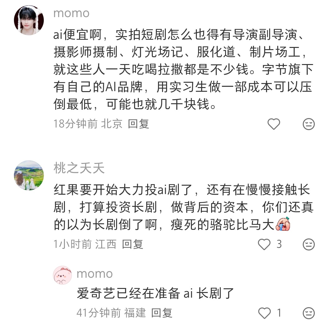 主要是ai漫剧最近好像火了,制作成本低,看的人也多。ai对各行各业的冲击越来越明显了