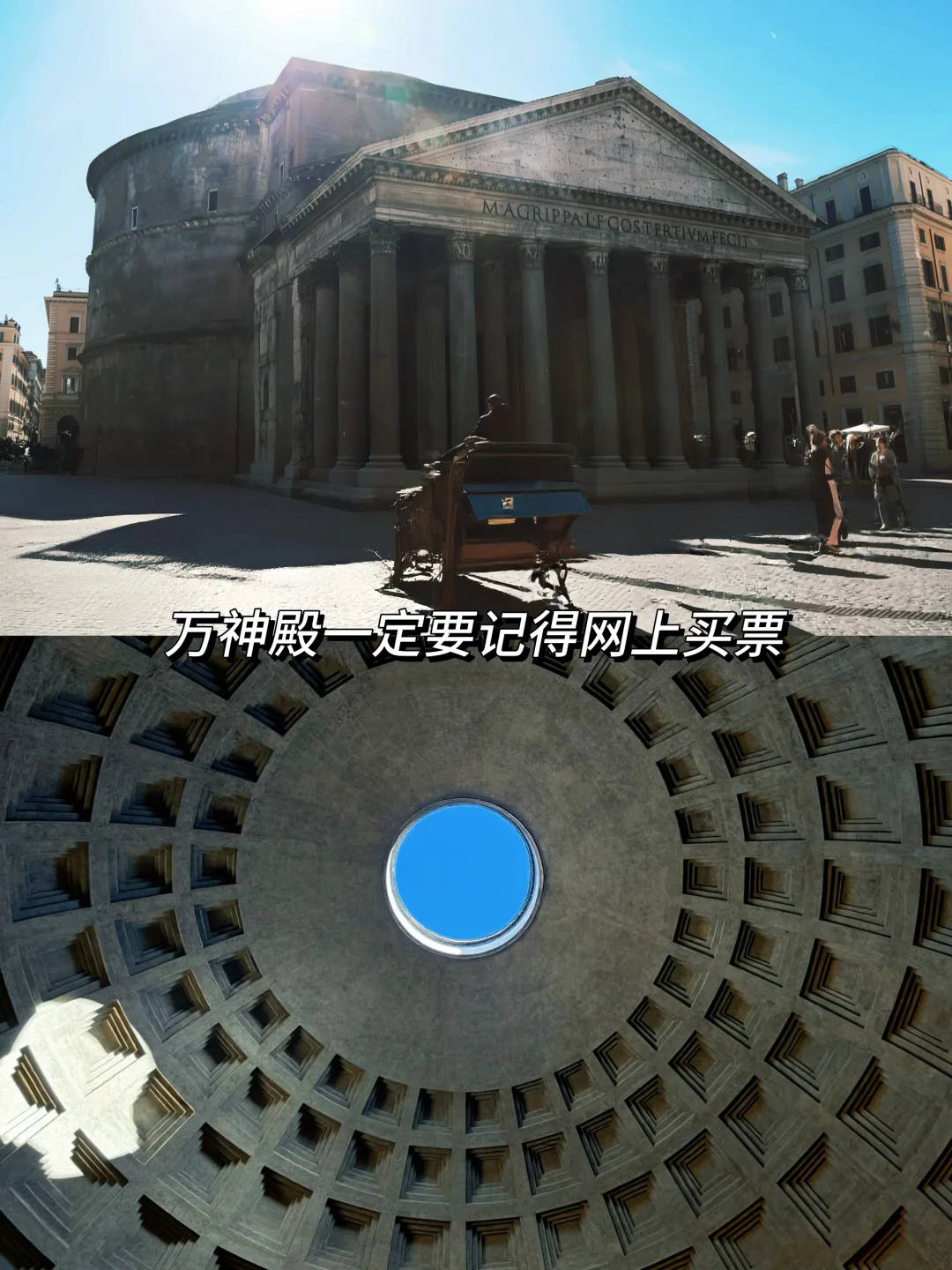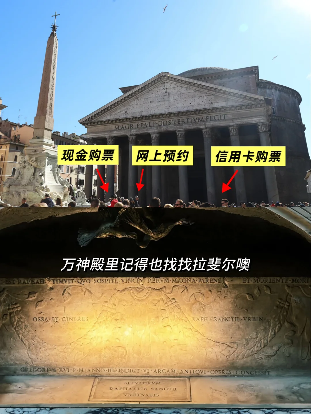 门票5🎫 世界上最大的无钢筋混凝土穹顶,2000年前的建筑挺神奇的,雨水通过下水系统排出。记得找找拉斐尔墓碑