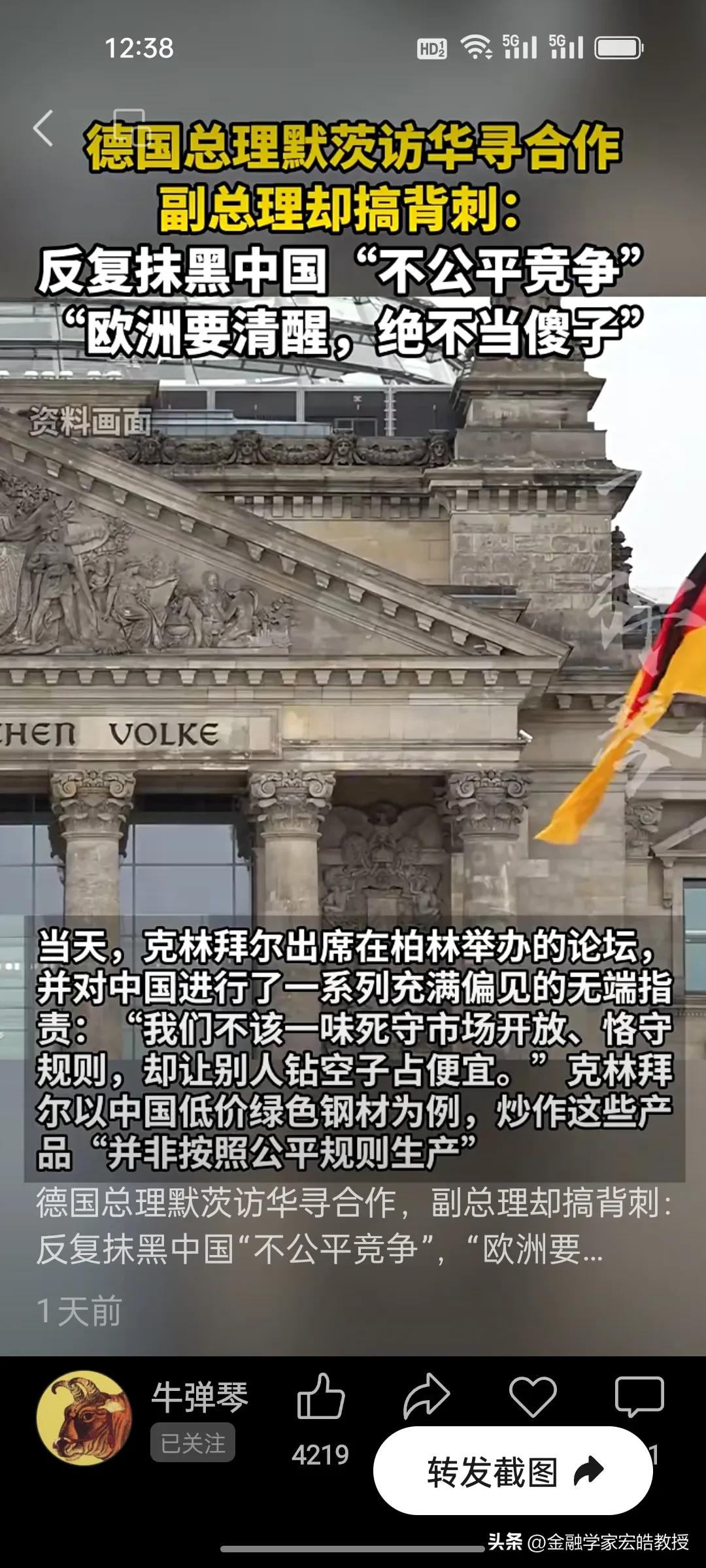 实在看不懂了,默茨访华后急了,副总理却在“背刺”?德国政坛上演冰火两重天! 刚从中国满载而归,德国总理默茨就像被按了“清醒开关”,在国内演讲时十分激动,他直言:“我们的生产力已经远远不够了,每周四天工作制和过度强调工作与生活平衡,根本无法维持德国的长远繁荣。”他呼吁德国人必须付出更多努力,才能在全球竞争中守住“经济火车头”的优势。 可另一边,根据《彭博社》报道,同样访过华的副总理克林拜尔,却在默茨访华期间,在论坛上反复抹黑中国“不公平竞争”,鼓噪欧洲“绝不当傻子”。 一个亲眼见证中国速度后危机感爆棚,一个揣着偏见“坐井观天”。同是德国高层,为何两个人对华认知天差地别?说到底,是选择直面现实,还是固守意识形态的区别。 这不仅是两个人的分歧,更是整个欧洲在新时代十字路口的迷茫缩影。天南地北大拜年