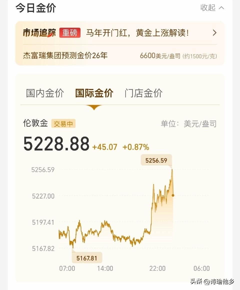 打起来了,打起来了,终于打起来了。昨天买的10W的黄金看来稳了,坐等周一开盘数钱,机构预计能够涨到6000,看来有希望了。 最近几天的黄金价格一直在5000左右徘徊,今天漂亮国的小弟先发制人开打了,不知道伊朗能不能顶得住。 战争机器一开,黄金贵金属价格必定上涨,再加上美元的弱势,现在就坐等周一开盘,黄金突破前高,坐稳扶好,准备起飞。