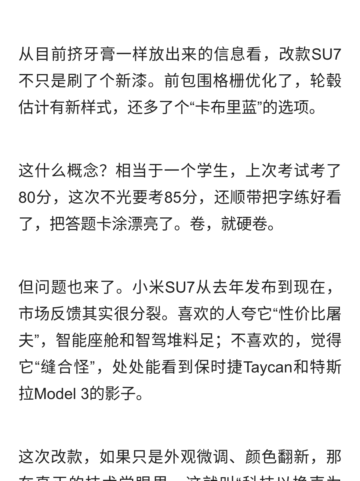 小米SU7赤霞红割韭菜还是绝活?对比Model 3、极氪007,能打几分?