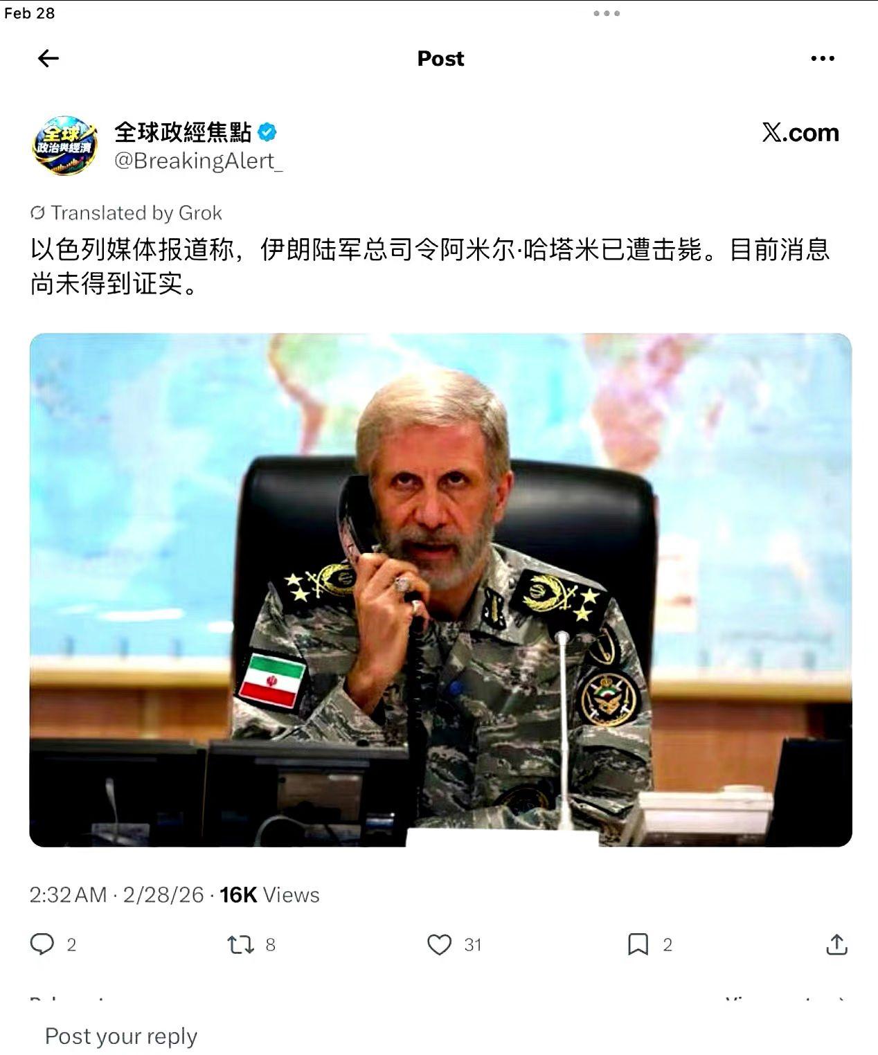 伊朗革命卫队今天把名字念出来了:特朗普、内塔尼亚胡、赫格塞斯。不是泛泛宣战,是逐 【53评论】【41点赞】 特朗普 伊朗伊斯兰革命卫队 内塔尼亚胡 赫格塞斯 欧美动态 看懂战事的普通人 2026-03-02