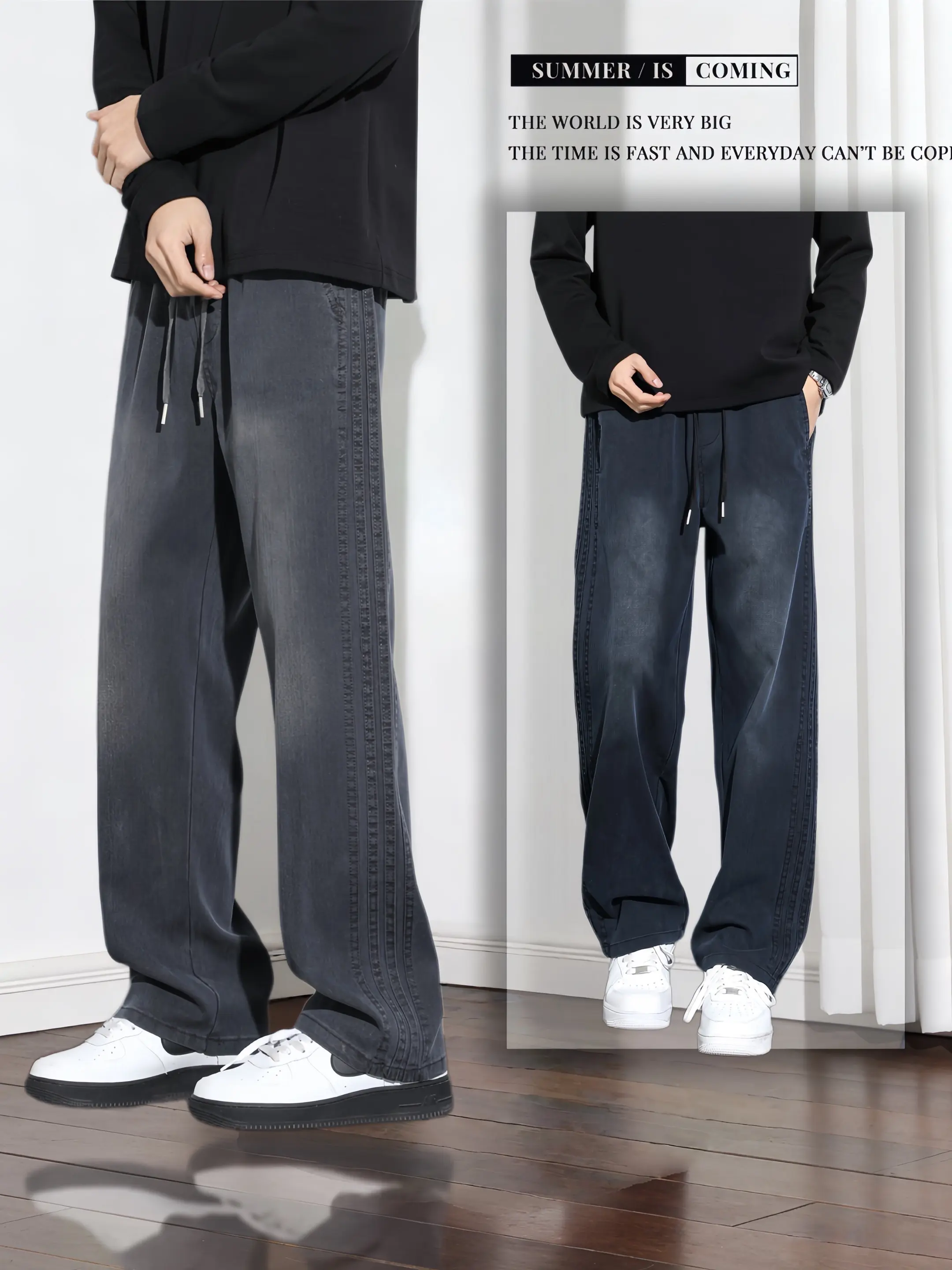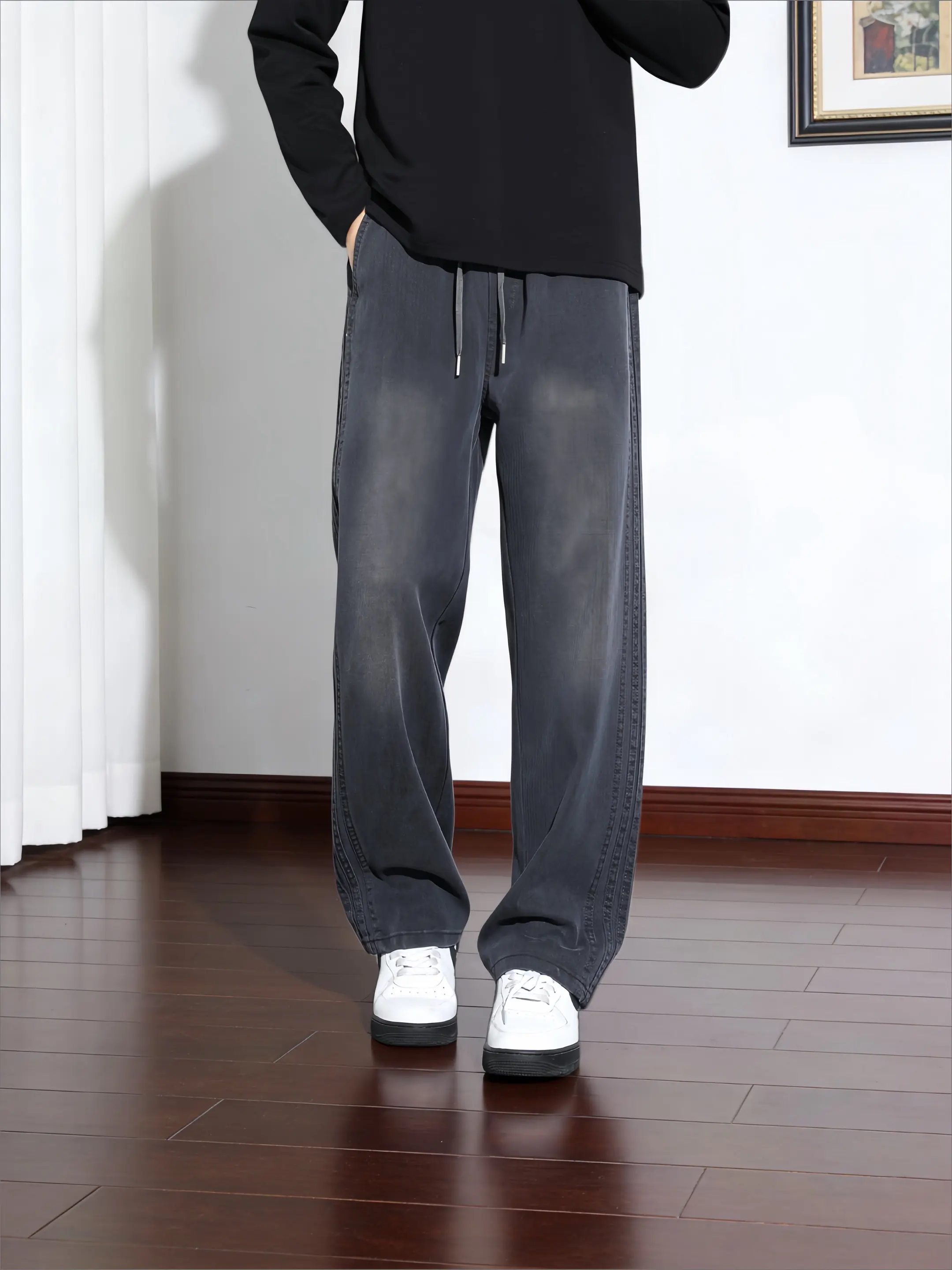 直筒裤男男裤男裤直筒坠感ins好裤推荐阔腿裤男宽松直筒垂感