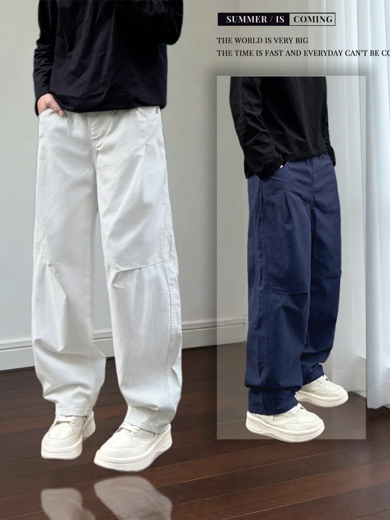 运动阔腿裤男 ins工装裤港风 阔腿裤男宽松直筒垂感 好搭的裤子 休闲裤穿搭
