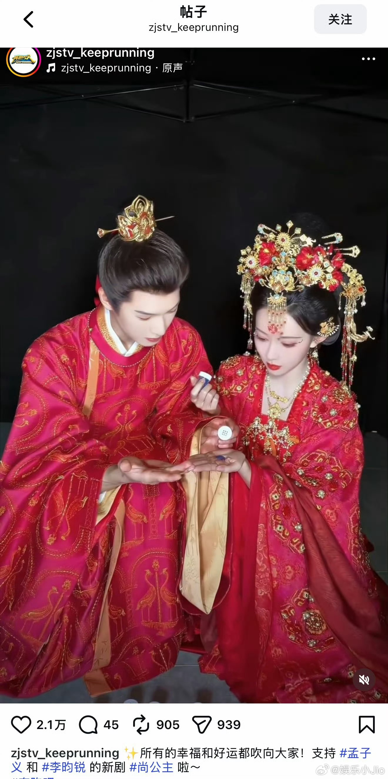 孟子义李昀锐要合体常驻跑男了,之前跑男还在ins上宣传了他俩的新剧《尚公主》,看