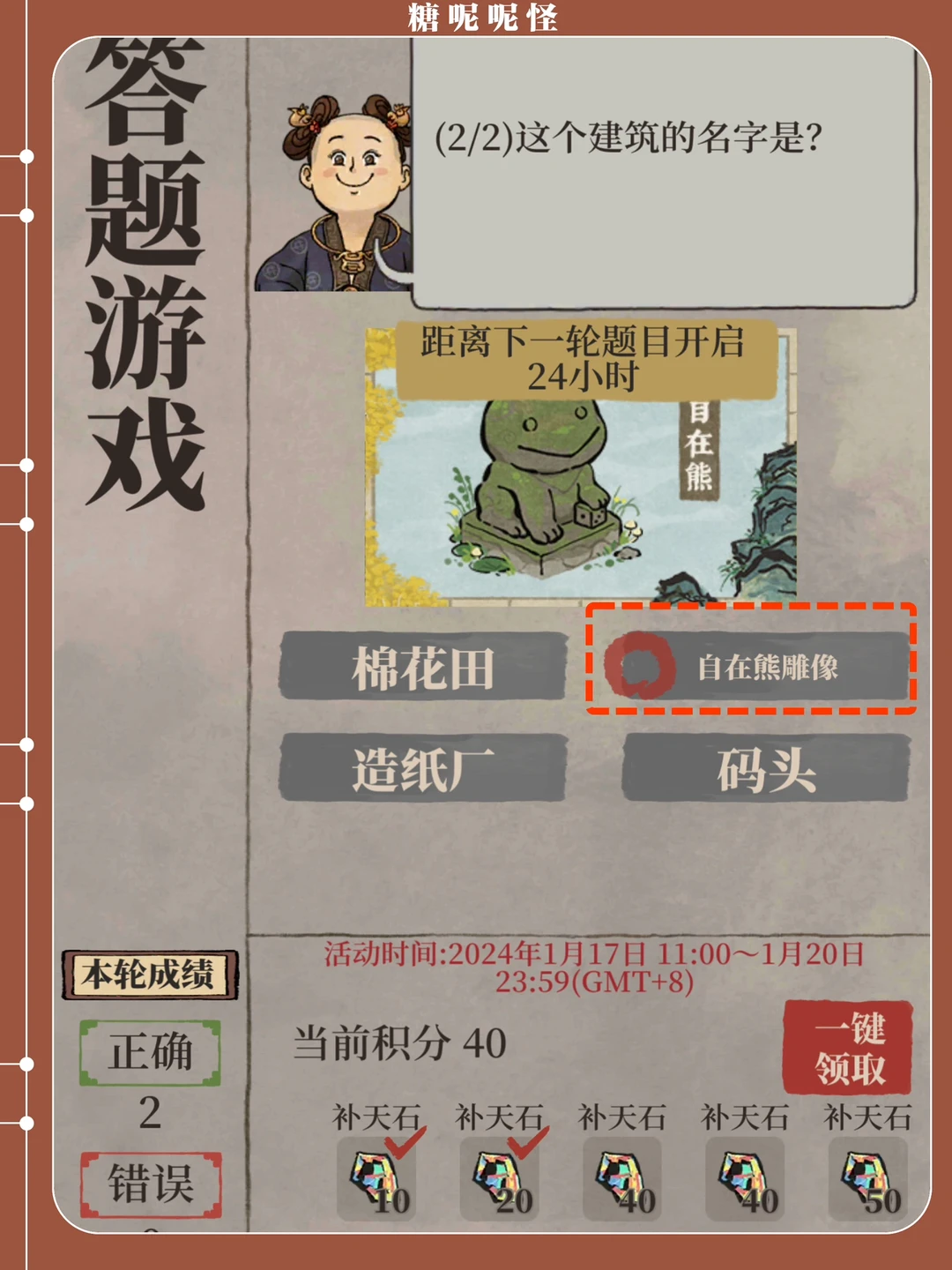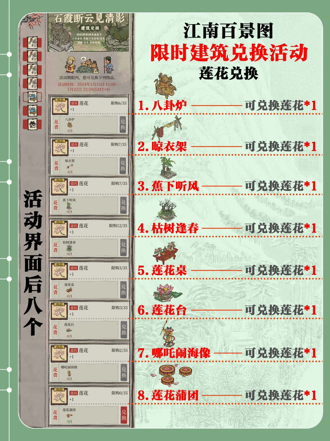 【烟雨画池】限时建筑兑换详细说明+今日答题