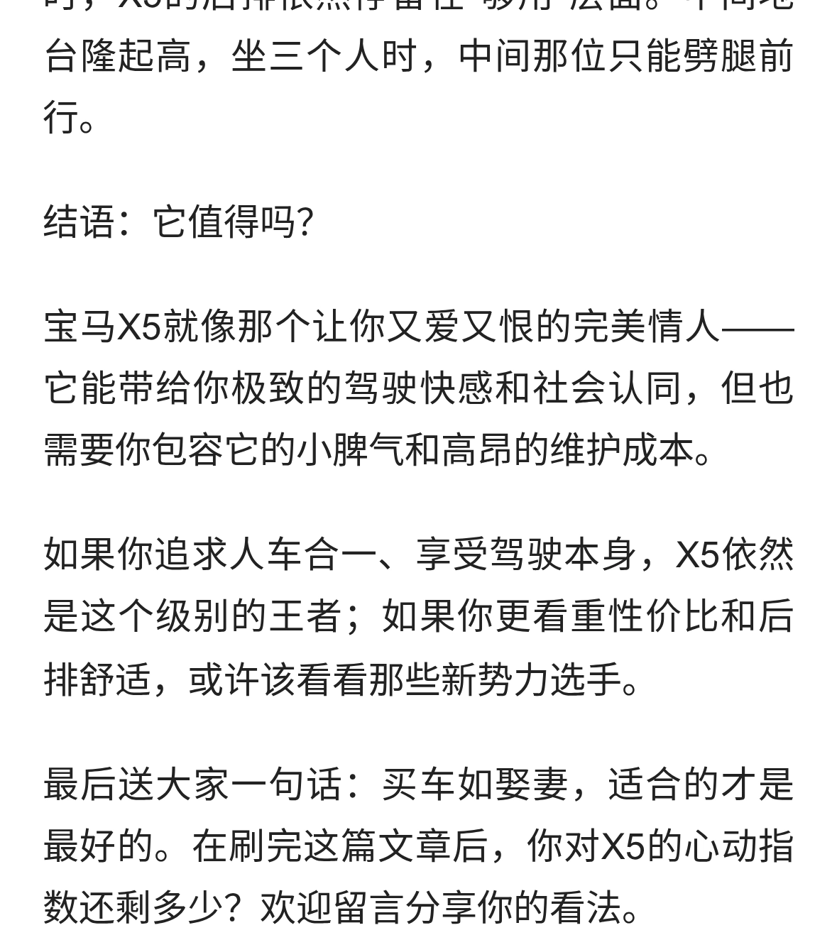 奥迪Q7车主坐了一次朋友的宝马X5后排,回家就写了篇后悔帖。 他说以...