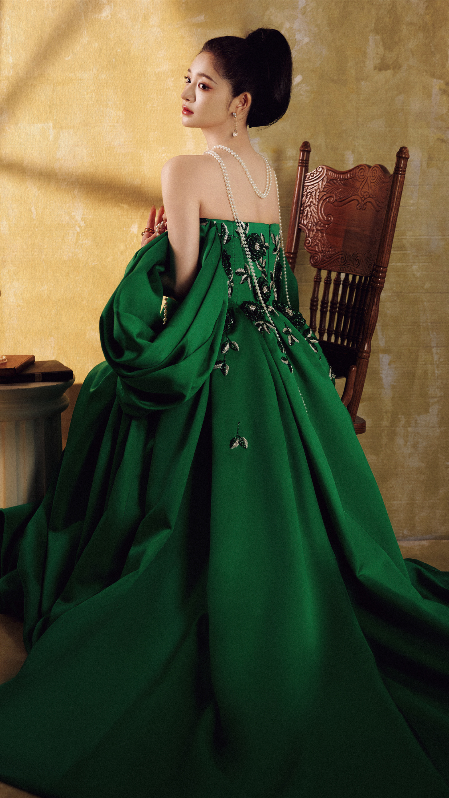 周洁琼:绿意盈盈,娉婷摇曳,演绎复古格调。周洁琼