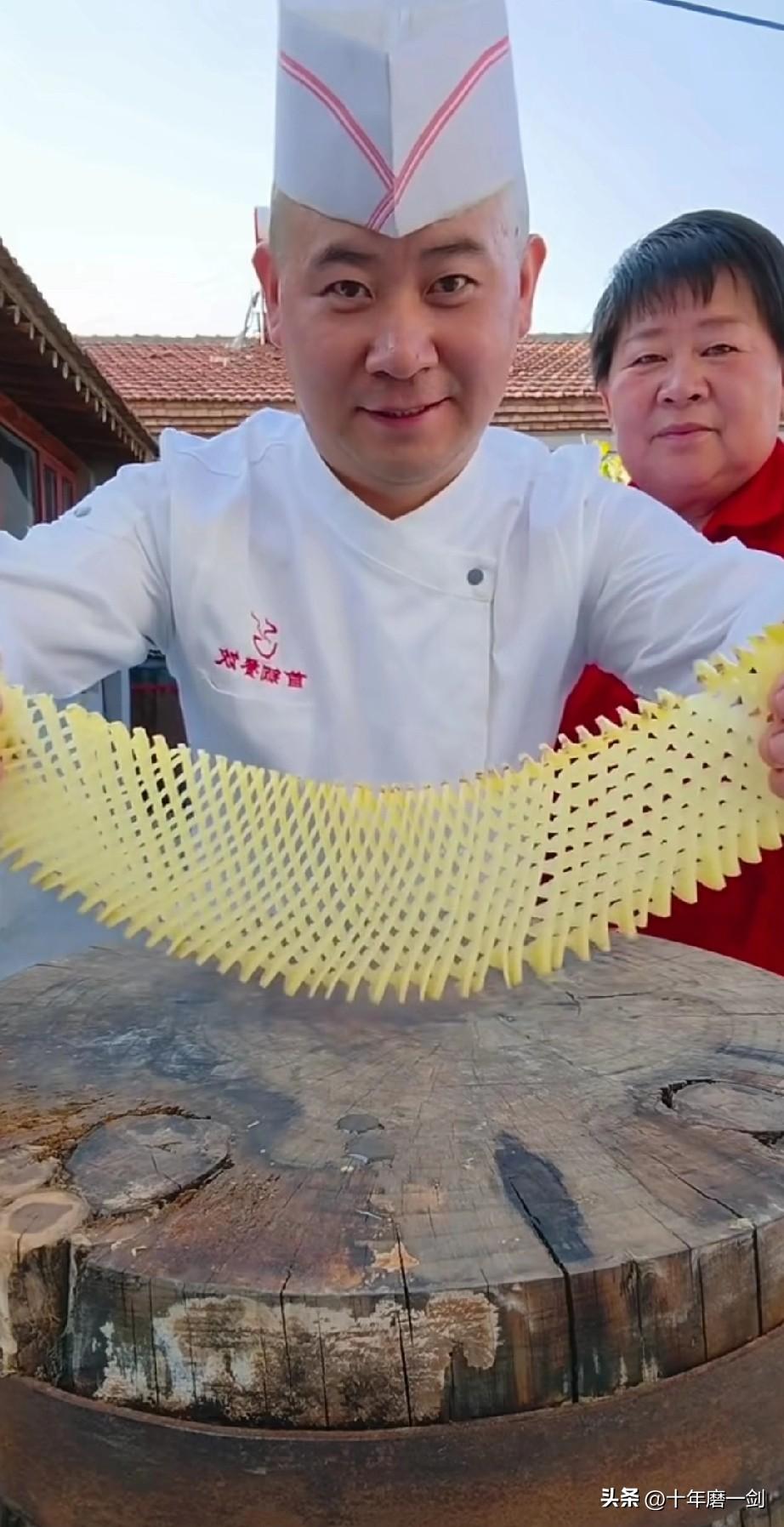真不是盖的,不是有多少人能做得到吧?厨师接过土豆后精准切片,刀工精湛,夺冠实至名归。这可真是三百六十行,行行出状元,师傅的刀功是无人可比的。能练出来这么精湛的技术,可不是一天两天的功夫。台上一分钟,台下十年功。这个冠军当之无愧。 行行出状元,把一个土豆切成网状丝,第一次看到,中国奇才人真不少,正如毛主席所说,只要在共产党的领导下,什么人间奇迹都能造出来。 勤劳智慧的中国人们,在长期劳动过程中,创造了一个个伟大奇迹。美好的生活,就是凭借着这些看似简单的技艺,使我们走向世界之巅。劳动人民最美丽,劳动的创造最光荣。