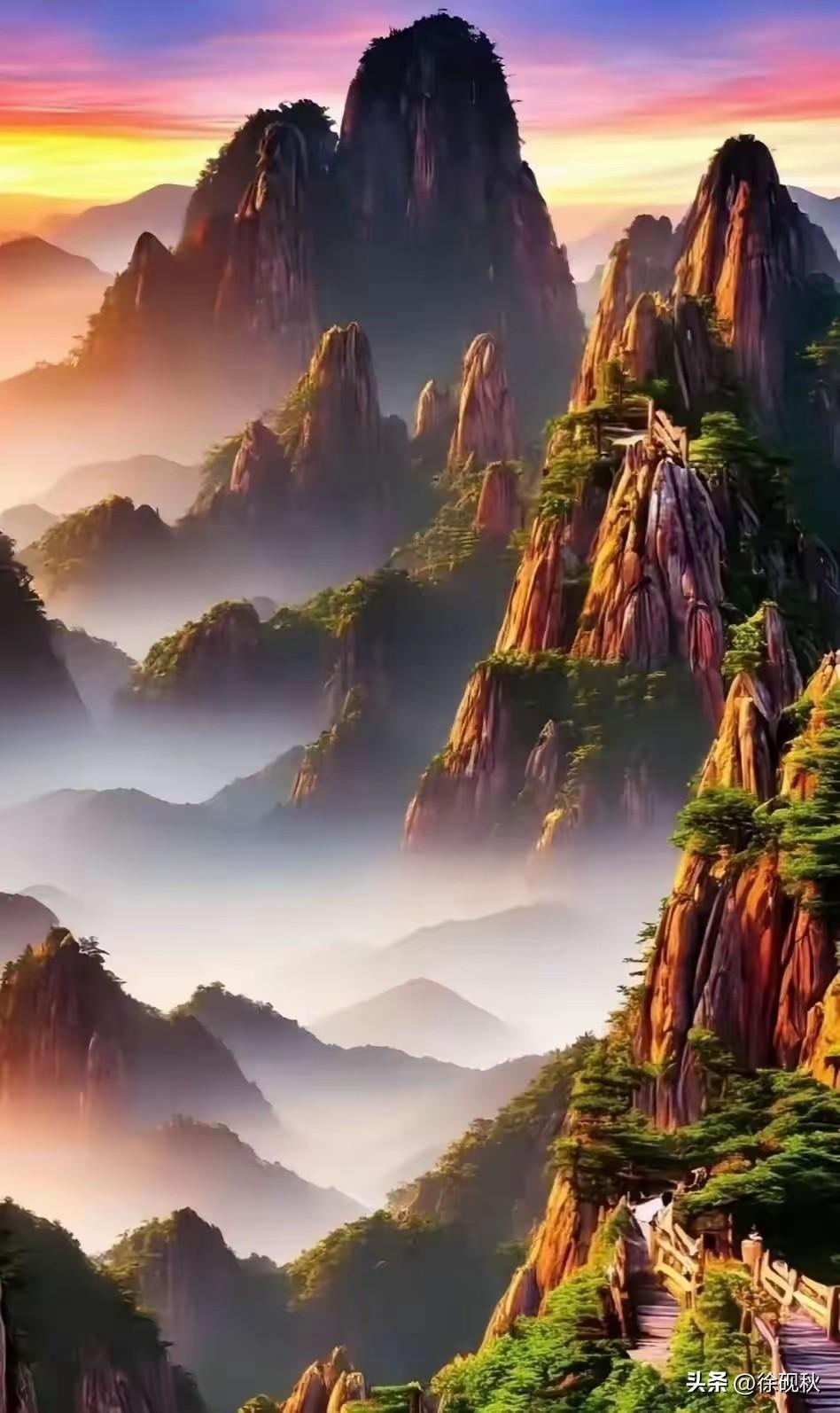 远山如墨抱星稠 灯火层叠织作绸 瓦脊蜿蜒承月色 交相辉映若蜃楼