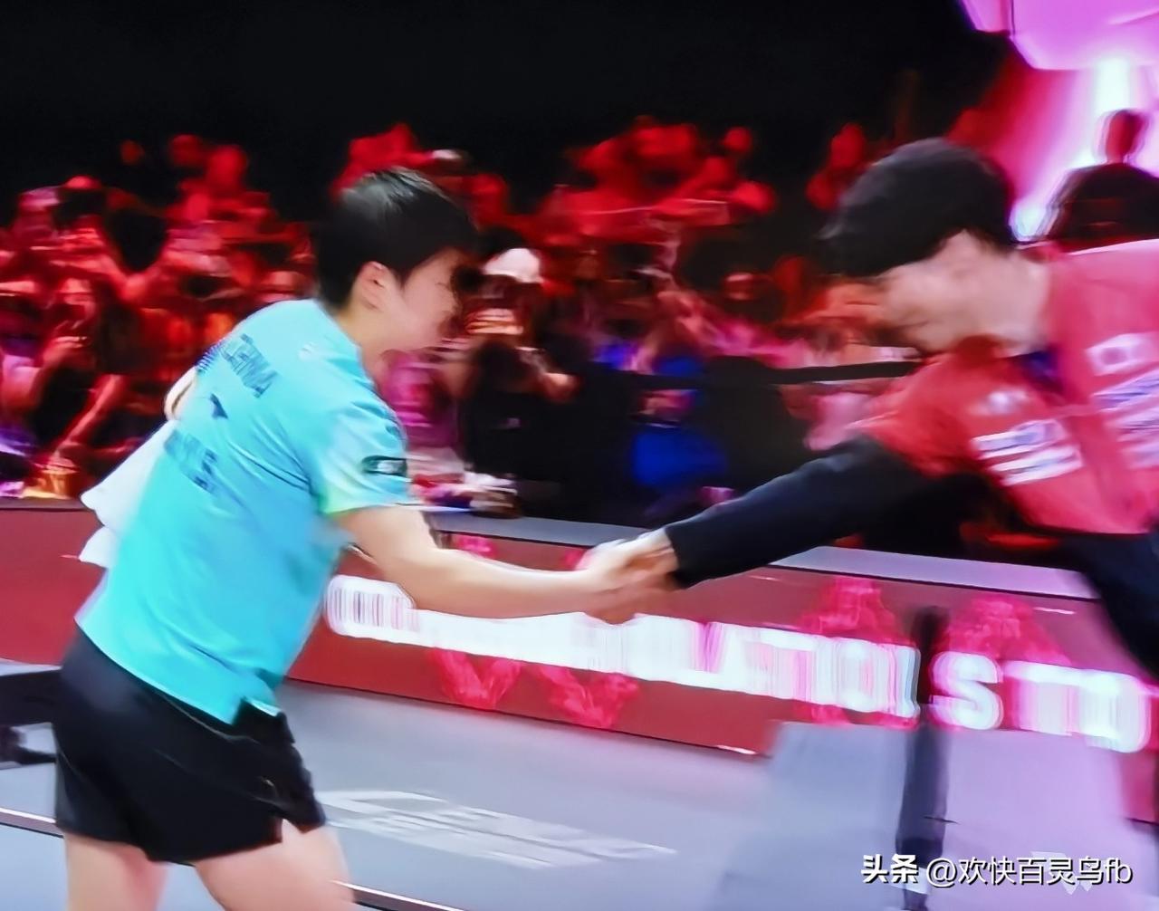莎莎一路笑,赢了早田就跟拿了冠军似的。先是笑着夸早田打的好,再是和裁判笑着握手,然后礼节性向早田教练问候。最后笑着跑向马琳。总之,比赛中一直绷着的脸现在一直在灿烂的笑。 因为下一个对手是队友,胜负已不重要。 这就是莎莎所想,也是她的格局。