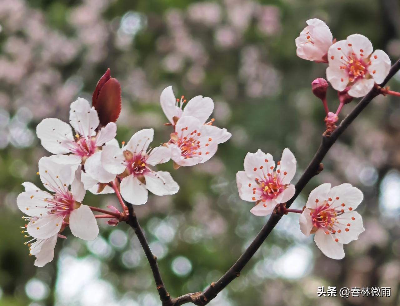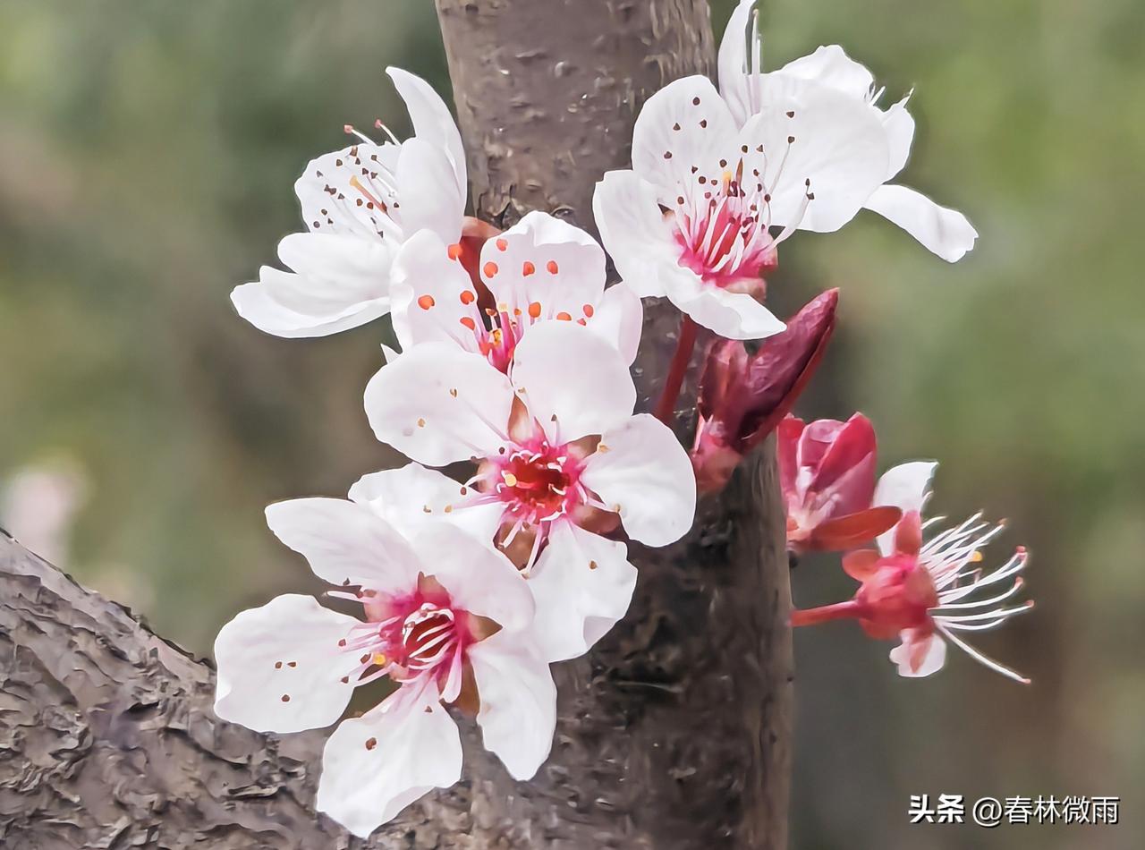 早春时节,天气渐暧。小区的紫叶李开花了。雪白的小花,红色的花蕊。层层叠叠,开满枝头,繁花似锦。香气四溢,招人喜爱。