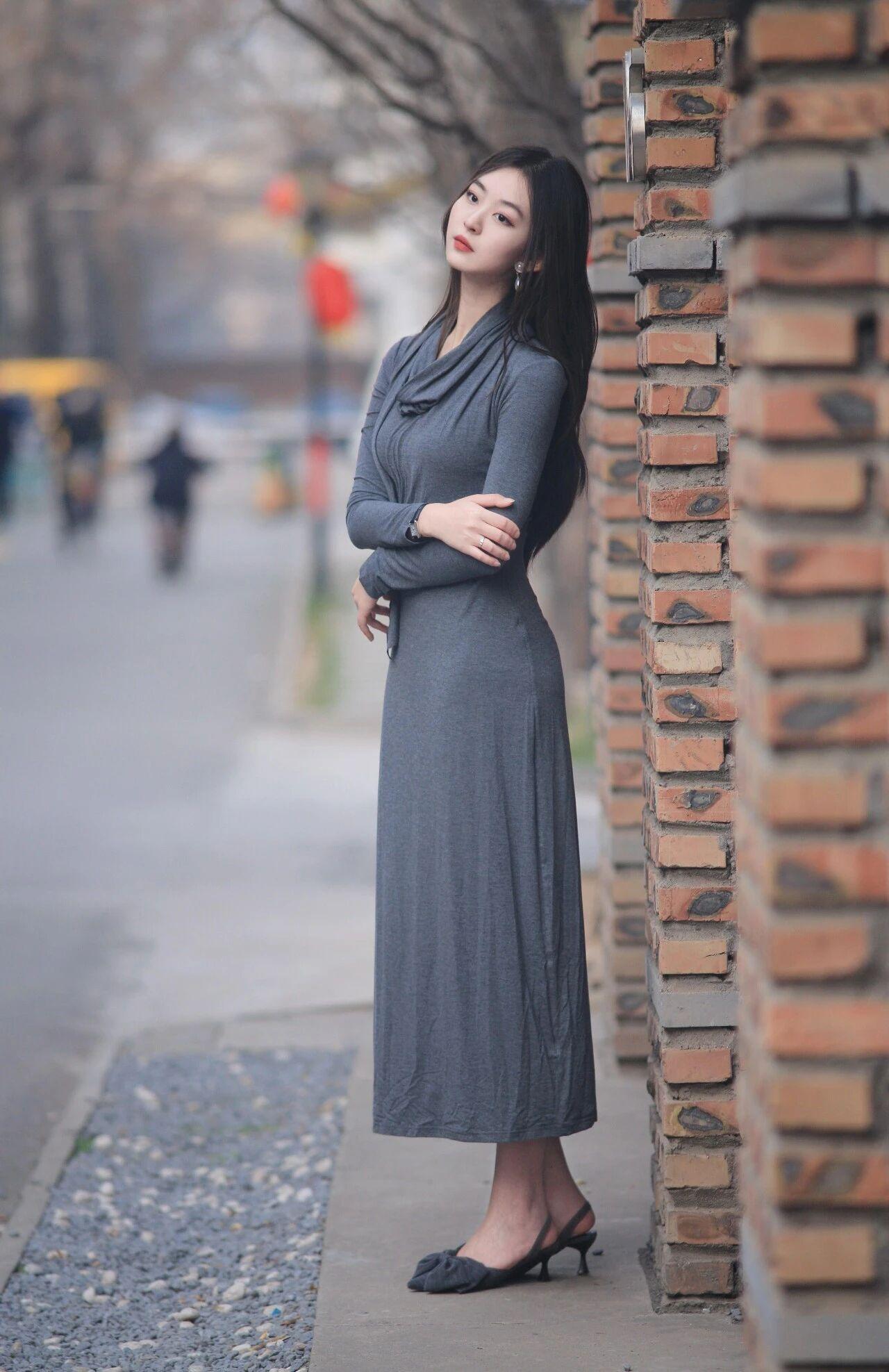 什么样的穿搭可以成为气质女神?小姐姐身着深灰垂感长袖长裙,荡领设计温柔随性,勾勒出舒展优雅的身段。乌黑长发自然垂落,搭配简约高跟,气质清冷又高级。 在复古砖墙与文艺街道的映衬下,每一帧都自带慵懒氛围感,清冷温婉又充满故事感。