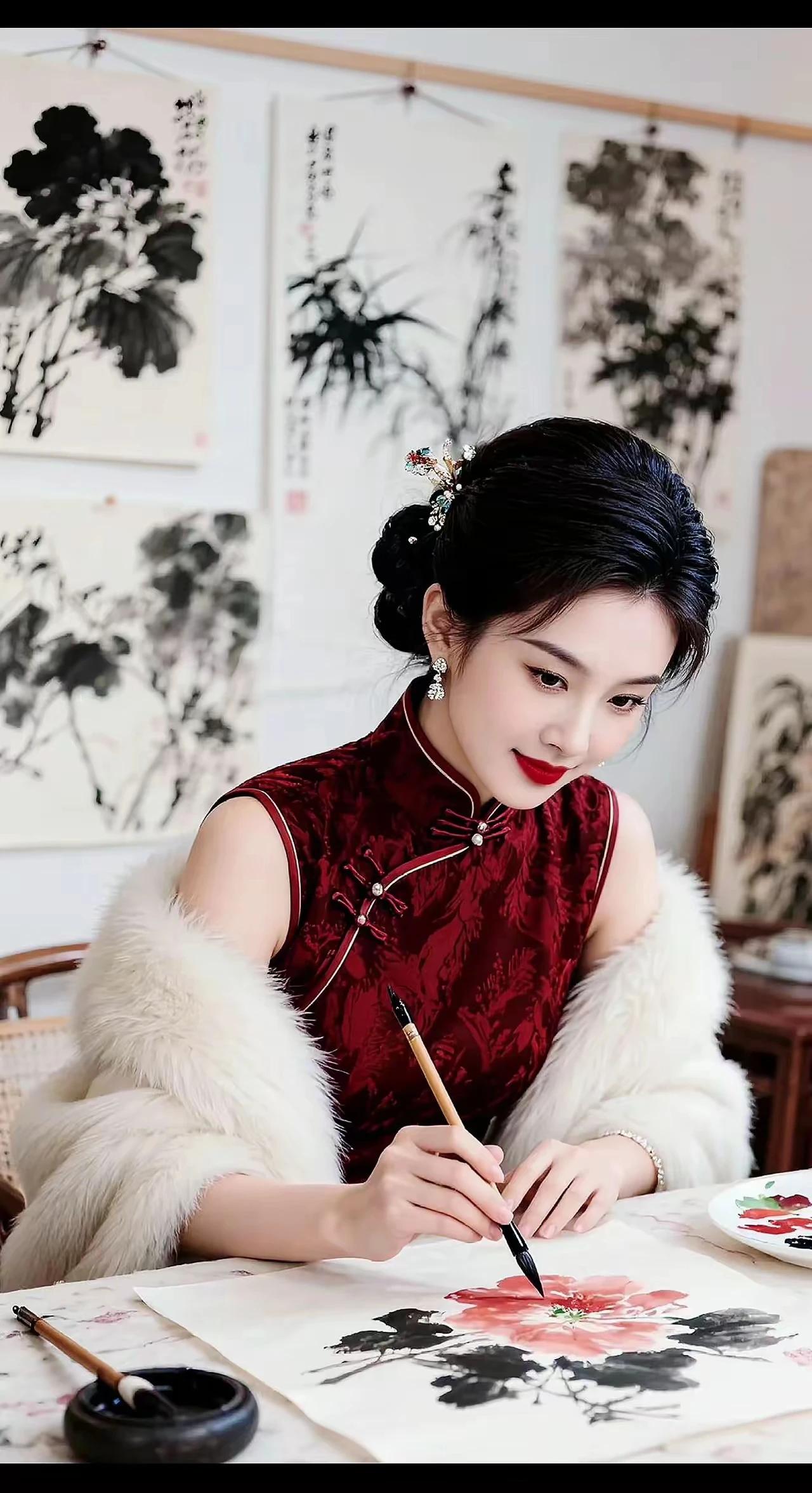 中国旗袍,国风古韵。 历史悠久,文化传承。 花鸟祥云,牡丹刺绣。 小家碧玉,大家