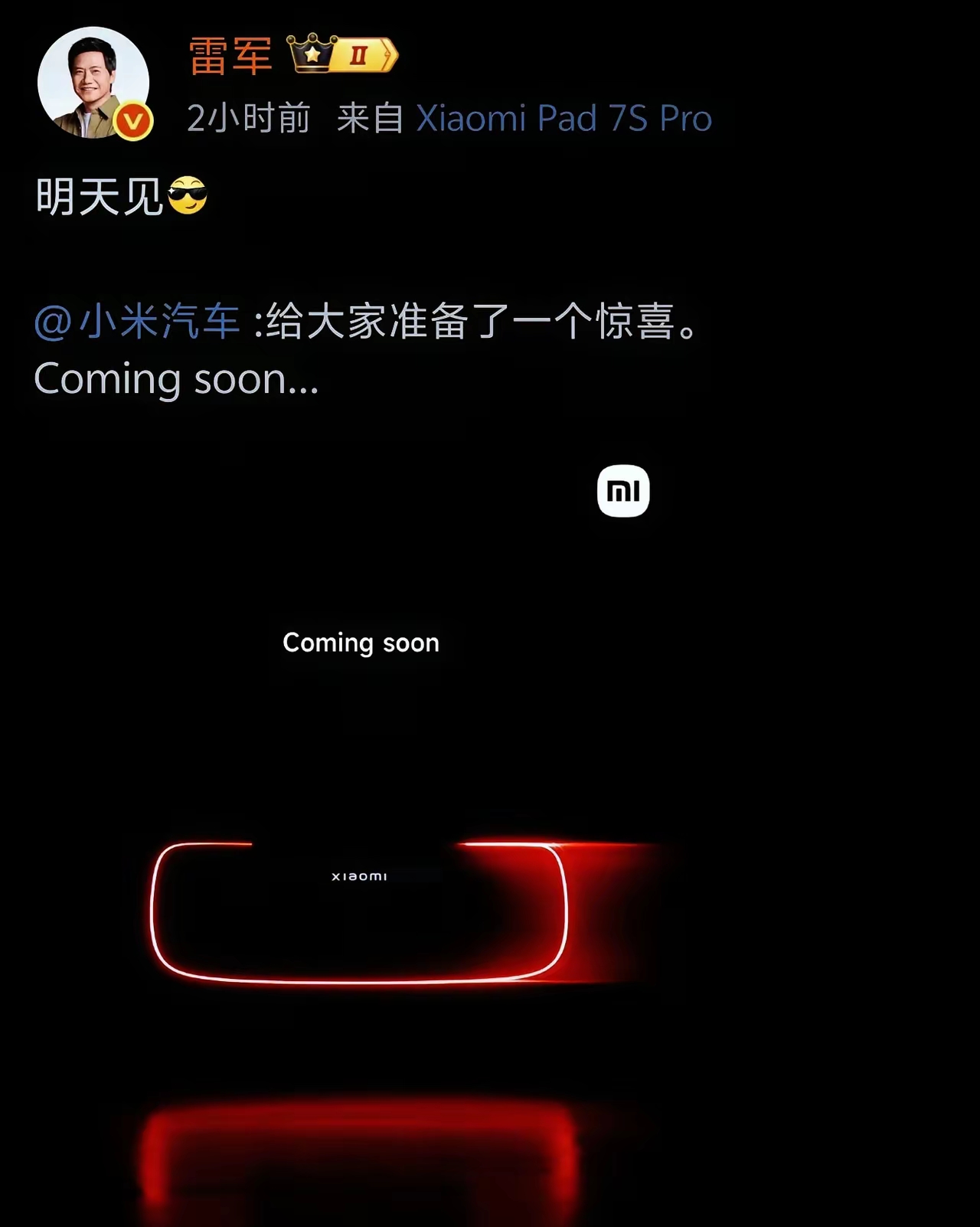 这造型真夸张,真帅啊!好像四驱兄弟里的赛车搬到了现实中! 雷总年龄越来越大,心却越来越年轻了!跑车都整上了,不整小打小闹,直接王炸!小米不仅要上纽北赛道,还要称霸啊!去年仰望U9极速472,激起了小米的壮志雄心,虽然入行晚,但是有一个汽车帝国梦!