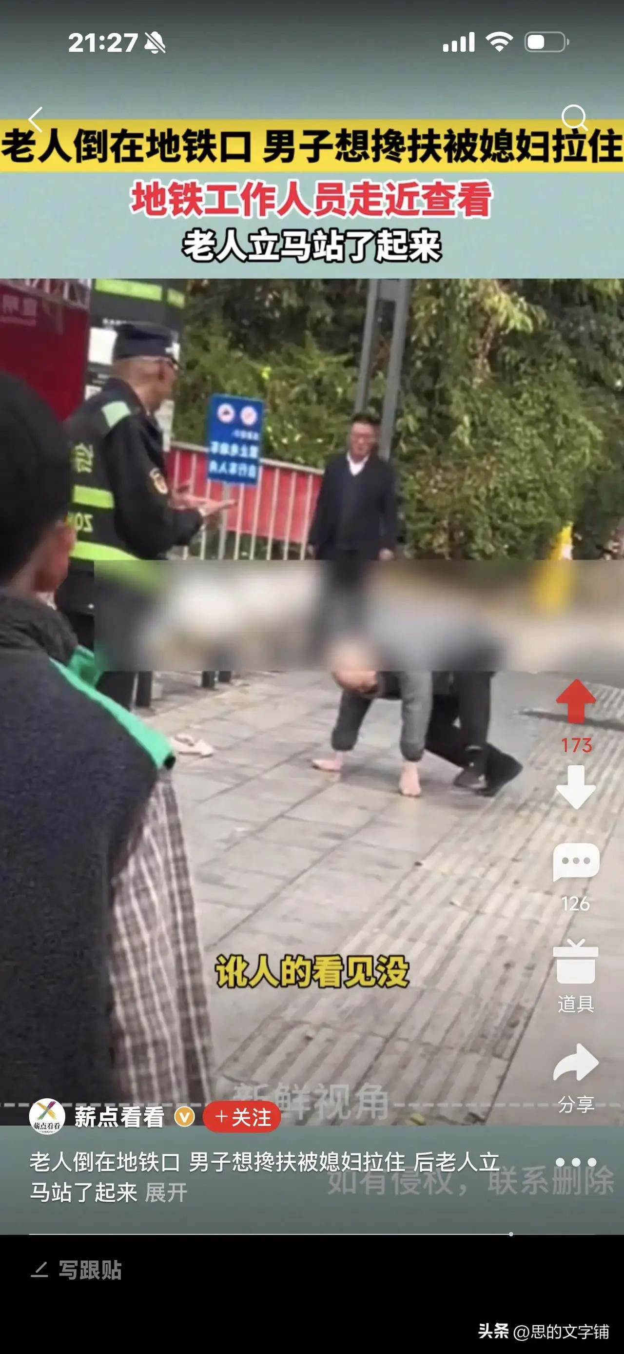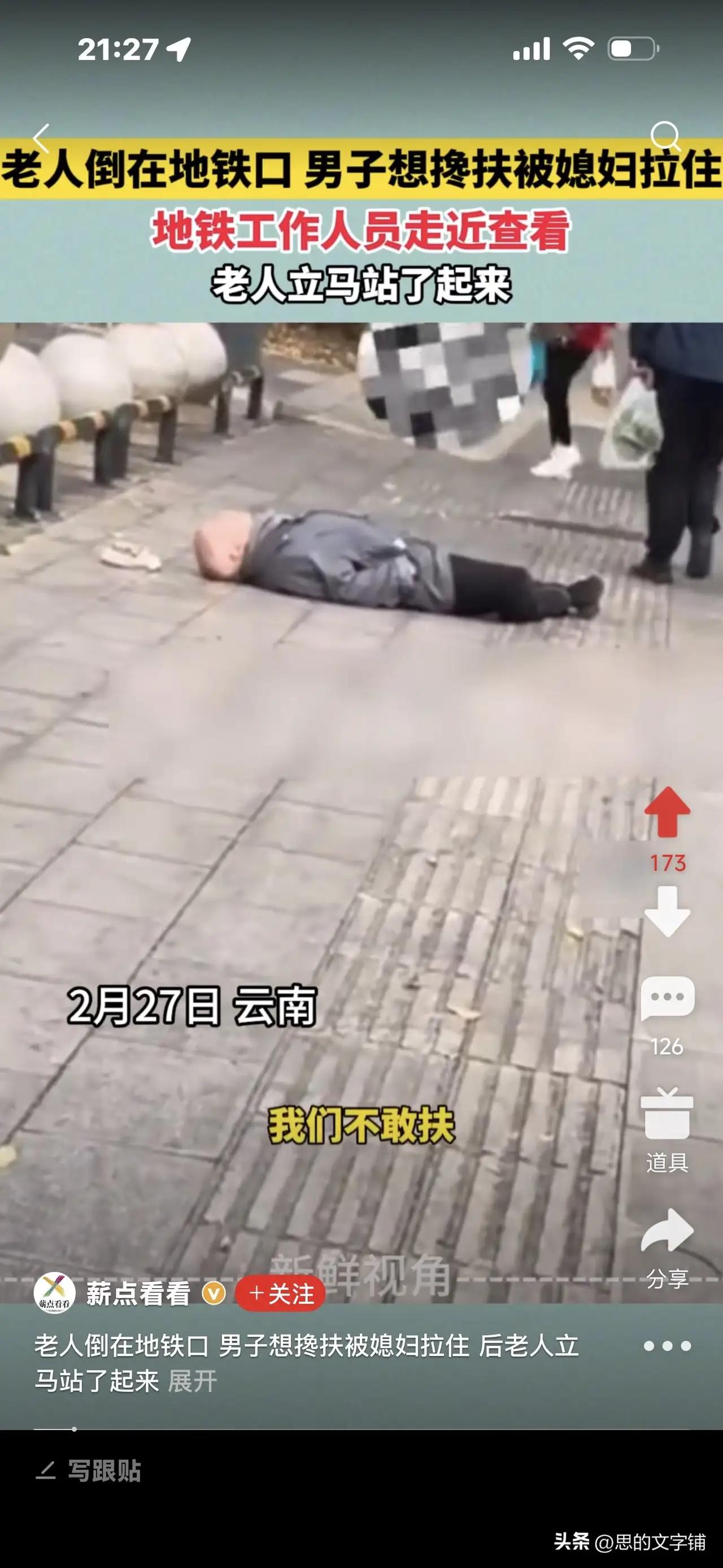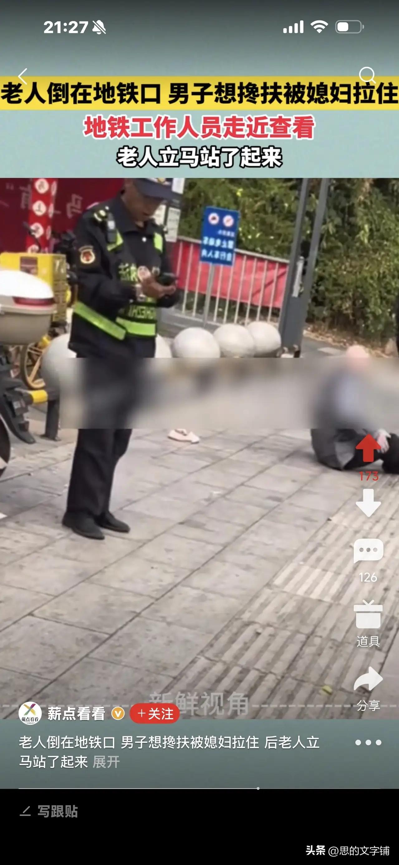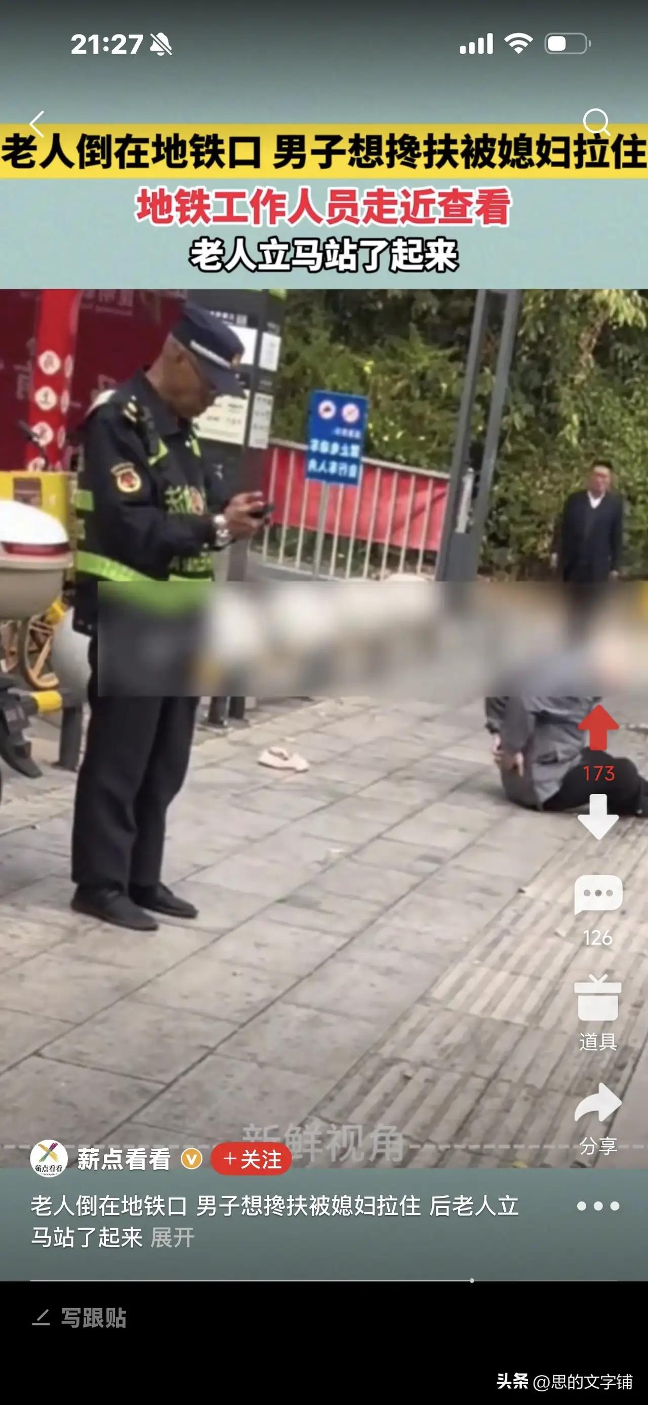 老人倒地地铁口,男子欲扶被媳妇拉住,地铁工作人员一靠近老人立刻站起——背后真相令人深思 近日,一段发生在地铁口的“跌倒”事件引发网友热议。事情发生在某地铁站,一位老人突然倒在地铁入口处,旁边一名男子见状,立刻上前准备搀扶老人。令人意外的是,这名男子的媳妇却急忙拉住了他,阻止他出手帮忙。正当围观群众议论纷纷时,地铁工作人员走近查看,老人却在工作人员刚靠近的一瞬间,立刻站了起来,仿佛刚才的“跌倒”只是个假象。 这一幕迅速引发网友们的广泛关注和讨论。有人质疑老人是否真的摔倒,是否存在“装病”骗取同情的可能;有人对男子媳妇的反应感到好奇,为什么她会阻止丈夫帮忙?更有人感叹如今社会中,类似的“假摔”事件屡见不鲜,让人防不胜防。 细心的网友分析认为,这种行为很可能是一种“骗取同情和帮助”的骗局。老人假装摔倒,吸引路人关注和帮助,而其家属则担心被外人干预,害怕骗局败露,才会阻止旁人帮忙。地铁工作人员的出现让老人不得不立刻“起身”,以避免被揭穿。 这起事件提醒我们,在公共场所遇到类似情况时,既要保持善良和同情心,也要保持警惕和理智。帮助他人固然重要,但更要注意安全和辨别真伪。遇到有人突然倒地,最好先冷静观察,必要时及时联系专业医护人员或地铁工作人员处理,避免盲目施救导致意外发生。 社会的和谐需要每个人的善意与理智共存。面对疑似“假摔”骗局,我们应当保持清醒头脑,同时也不能因此失去对真正需要帮助者的关怀。只有这样,才能构建一个既温暖又安全的公共环境。 这起地铁口的“老人倒地”事件,表面看似简单,却折射出复杂的人性和社会现象,值得我们每个人深思。 扶起老人被讹