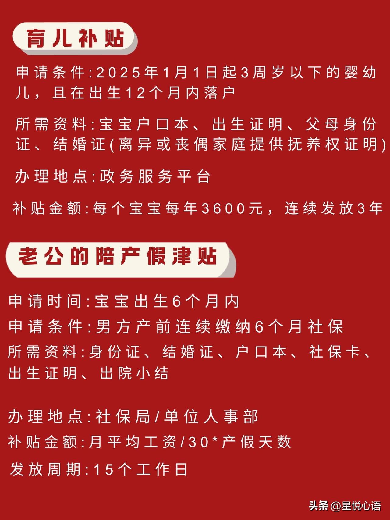 2026生育福利真的太香了!从产检到养娃,国家给的补贴一笔接一笔,不领真的血亏! 产检有2000块补贴,生产能报1000-5000,分娩津贴顺产剖腹产还不一样,生育津贴按工资和产假天数算,还有每年3600的育儿补贴,个税每月还能扣1000,宝爸还有陪产假津贴! 有人说个别地方没津贴,其实是没摸透政策,现在全国津贴都直接打个人卡,10天就能到账,不用看单位脸色。 准爸妈们赶紧把材料备齐,别让这些实实在在的钱溜走,生娃养娃,国家真的在实打实帮衬!