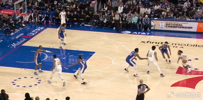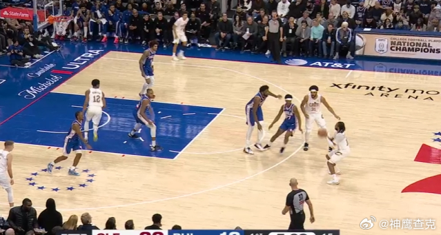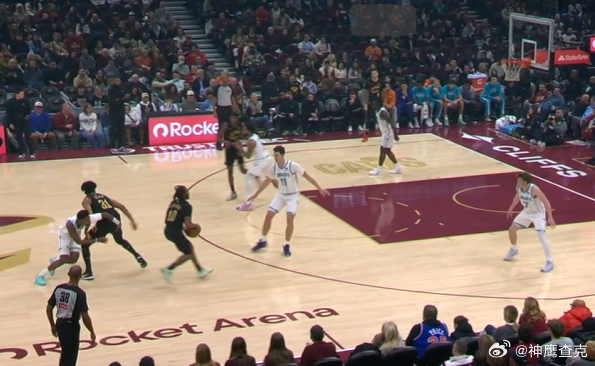 12 13 14 15 16 17骑士牛角站位起手发动“Stagger Decoy DHO”战术:弱侧的泰森作为诱饵借助“Stagger”上提佯攻后,强侧底角的加兰迅速上提与拿球策应的阿伦衔接手递手配合。加兰行进间吸引武器、奥克罗双人夹击后,立即从两人之间的缝隙击地传球找到顺下的阿伦。