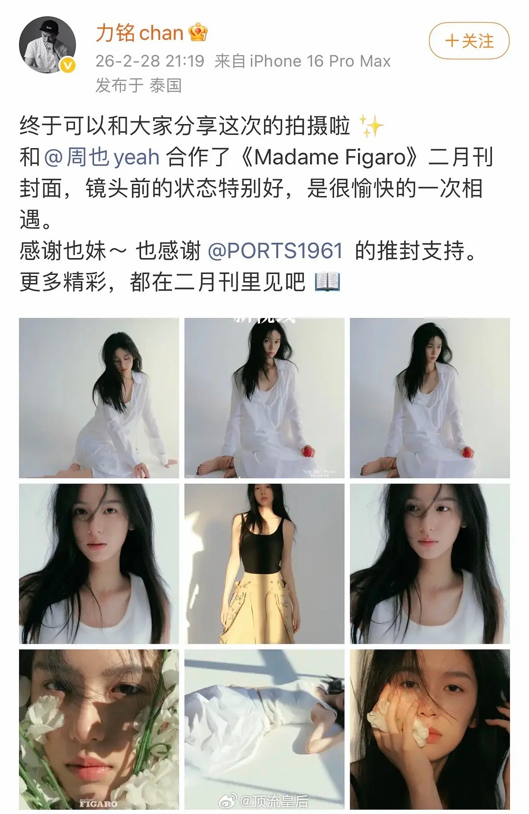 有人造谣周也自费上费加罗,但实际情况是杂志艾特了品牌鸣谢,品牌方也有认领。