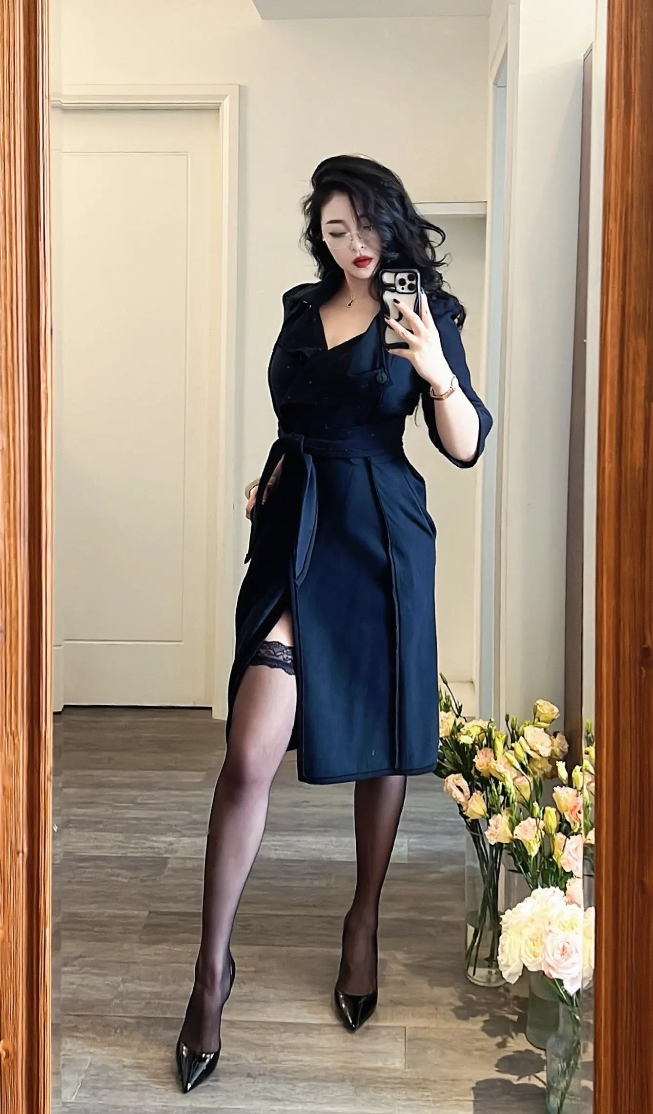 御姐 姨圈美女 风衣 大长腿