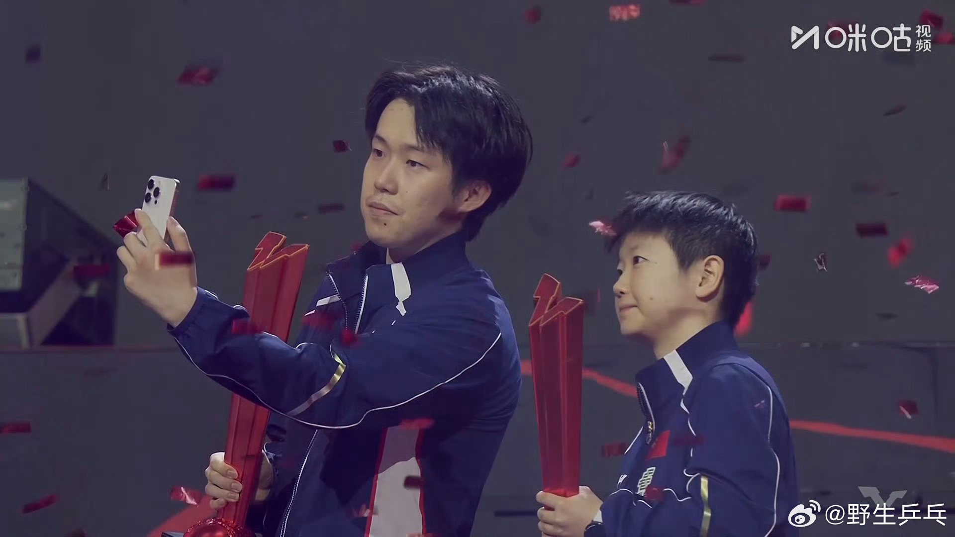 王楚钦孙颖莎新加坡大满贯冠军自拍
