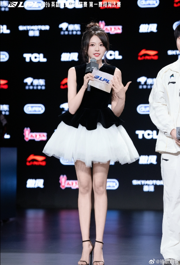 好腿!主持骆歆晒照:打卡年后LPL第一天班