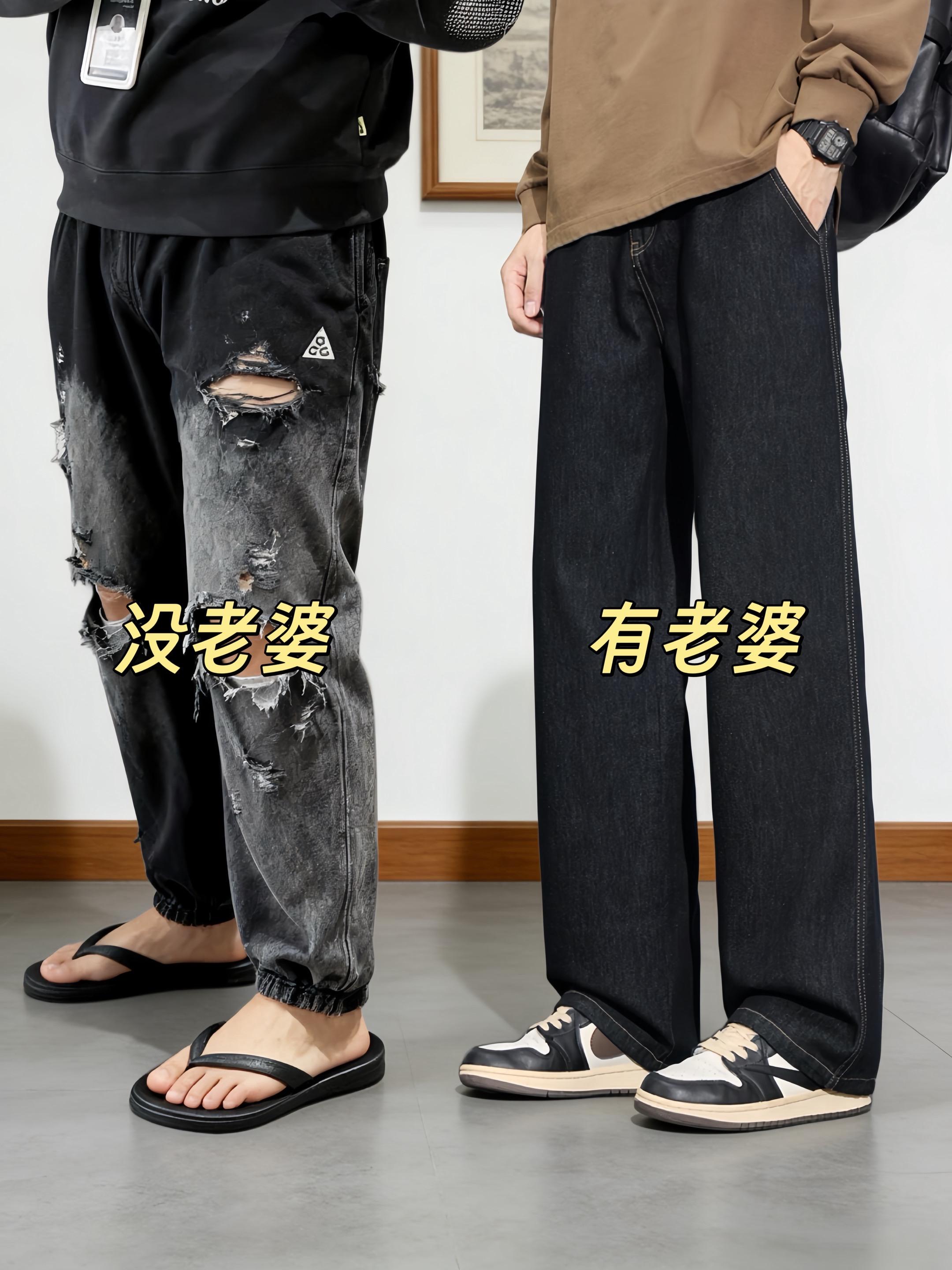 好裤推荐 阔腿裤男牛仔 牛仔裤 直筒牛仔裤 男装裤子