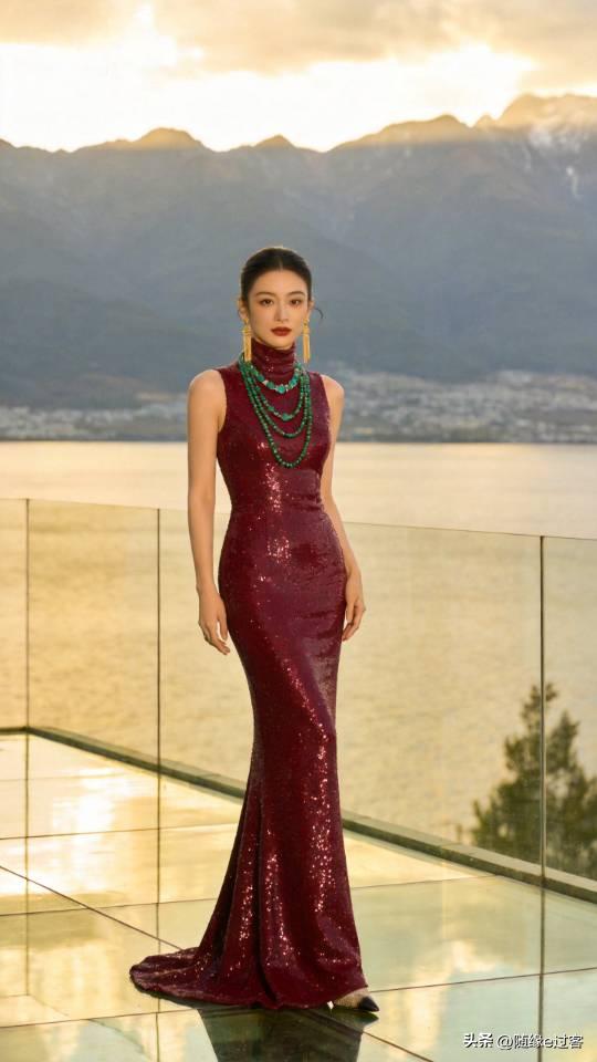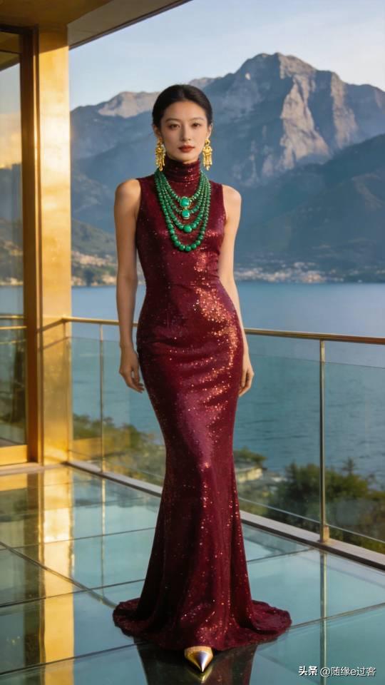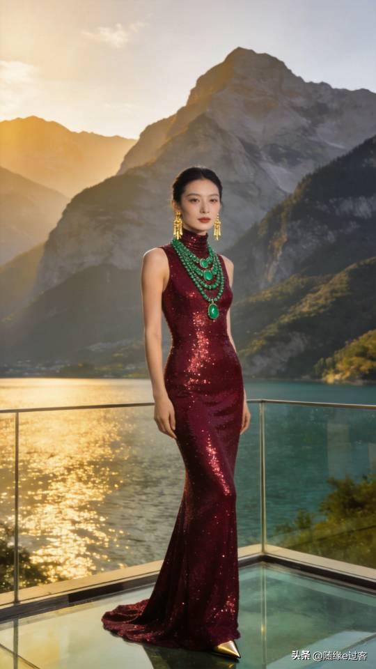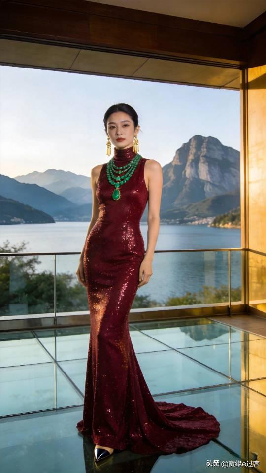 优雅红裙美女,闪耀珠宝,尽显奢华魅力!连衣长裙 高清美女