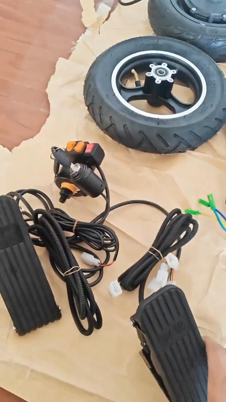省钱到极致的方案。 自制卡丁车最省钱的方案,最后再教你一遍。 ·就是这些东西,这个叫轮毂电机,单边轴的轮毂电机,跟平衡车的拆机轮一样。 ·这个就是前轮辅助轮。 ·这个叫控制器。 ·这是油门刹车踏板。一个样油门刹车的功能主要取决于跟控制器上面接的是油门还是刹车。 ·这个叫多功能开关,怎么能最便宜?这种的如果只是给小孩玩,可以搜平衡车拆机轮,找塑料轮,非常便宜,但是大人玩承重不行,大人玩就得需要用铝合金的轮毂,也有便宜的,几十块钱一个,自己去搜。 ·叫单边轴轮毂电机或者平衡车拆机轮,这种前轮有更便宜的,十几二十块钱。 ·这种是充气轮,买实心轮更便宜点。 ·这个踏板姓名的是底座,加厚的,可以不买这个,几块钱一个。 ·这个开关可以直接用五色开关,但是这种的线不够长,自己把线接长就行。 ·控制器刹车加强的,100大几,普通的100多点,还是嫌贵就换成主板,主板几十块钱一个功能。 这几样是必须要买的,可以买便宜的,但是不能少东西。 ·这是选配的仪表灯和喇叭,这种支持一线通的,50块钱左右,可以买十来块钱的,改一改插头,一样能用。 ·这是灯喇叭一体的,像这种做好插头的,就是直接对插,可以自己买端子,买这种接线端子,把插头改一下,可以让它直接对插,省点事,也可以直接剪断,线缠到一起,绝缘胶布扎一下一样。 ·还有这种轮毂电机线本身的线是不够长的,需要接一下,有卖延长线的,也可以自己给它延长一下,省钱,自己就得稍微多费点事。如果预算够,直接有人卖这种打包给你。做好插头的线也是接长的,直接回来自己对插就行。