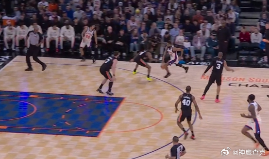 14 15 16 17 18沙梅特右路跟进快攻接阿尔瓦拉多上球后,佯装在右翼出手追身三分点飞扑防的瓦塞尔,随即突破分球找到同侧底角大空位的布里奇斯,大乔接球垫步调整后三分手起刀落。