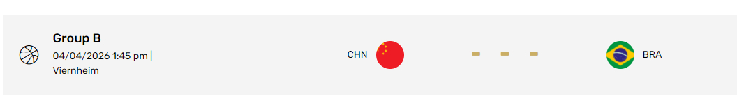 2026年曼海姆邀请赛小组赛赛程出炉:4月4日,中国vs巴西4月6日,中国vs塞尔维亚4月8日,中国vs拉脱维亚4月9日,中国vs新西兰