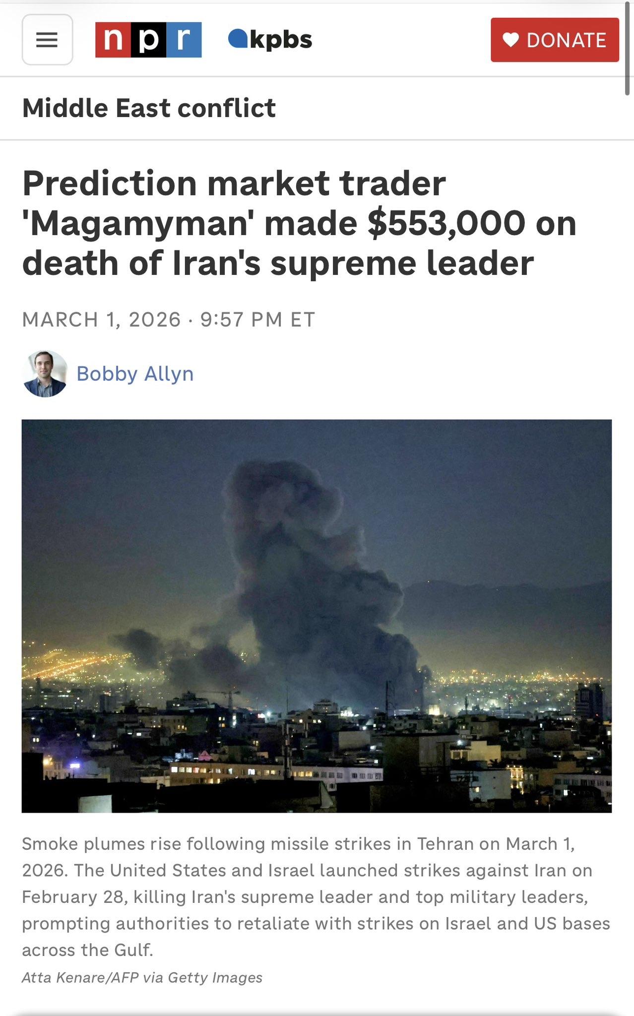 有一个匿名者(网名magamyman)在预测市场准确预测美国、以色列轰炸伊朗、炸死哈梅内伊的时间表,已赚了63万多美元。猜猜这个人会是谁?