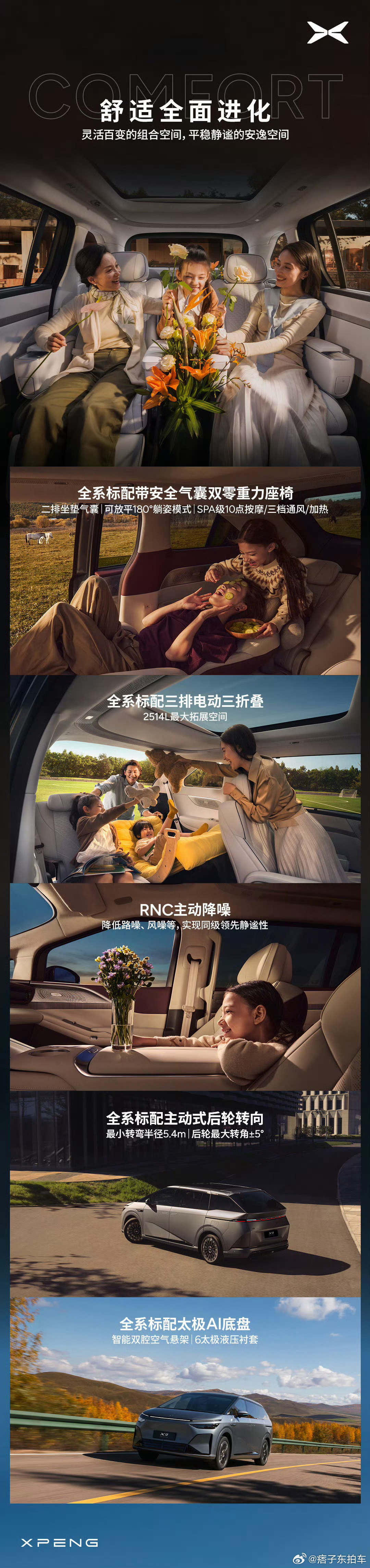 此外,小鹏X9也到了一年一改款的时间点,2026款的续航小幅提升到750km,同时全系换装图灵AI芯片,算力超越老款的双英伟达Orin,全车智能🤙(如果你还有续航焦虑,同样星舰造型的增程版也非常不错)小鹏第二代VLA发布新款小鹏X9纯电版上市30.98万起