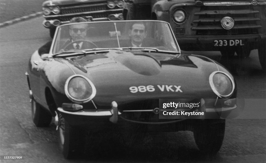 第一张照片拍摄自 1962年 5 月 1 日,地点是伦敦西南的里士满。巴列维此刻正在试驾一辆捷豹 E-Type敞篷,后面跟着两辆伊朗驻英国大使馆的工作车辆。从现有巴列维的车库清单看,这位国王对英国车,尤其是劳斯莱斯可谓情有独钟,但捷豹他是真的兴趣寥寥,可能是因为那个时候捷豹品牌的定位还不能彰显这位国王的地位吧。所以在试驾了E-Type后,他并没有下单,回到伦敦后就赶去了荷兰参加了当时荷兰皇室的婚礼活动。
