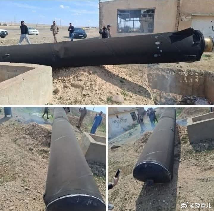 这是坠落在阿尔-希尔卡特区一个村庄的伊朗导弹的照片。