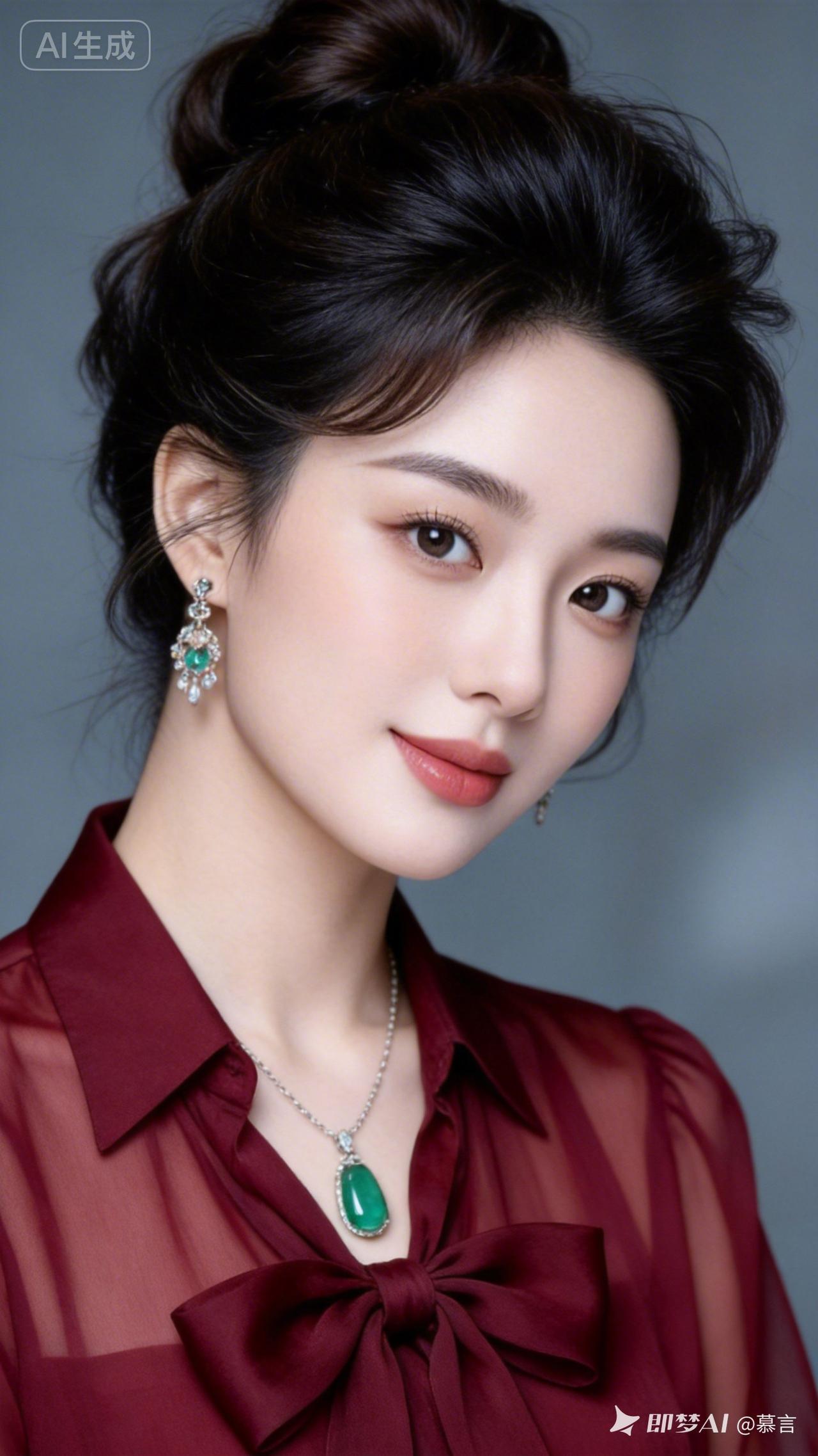 优雅红衣少女,绿宝石项链闪耀,气质满分!