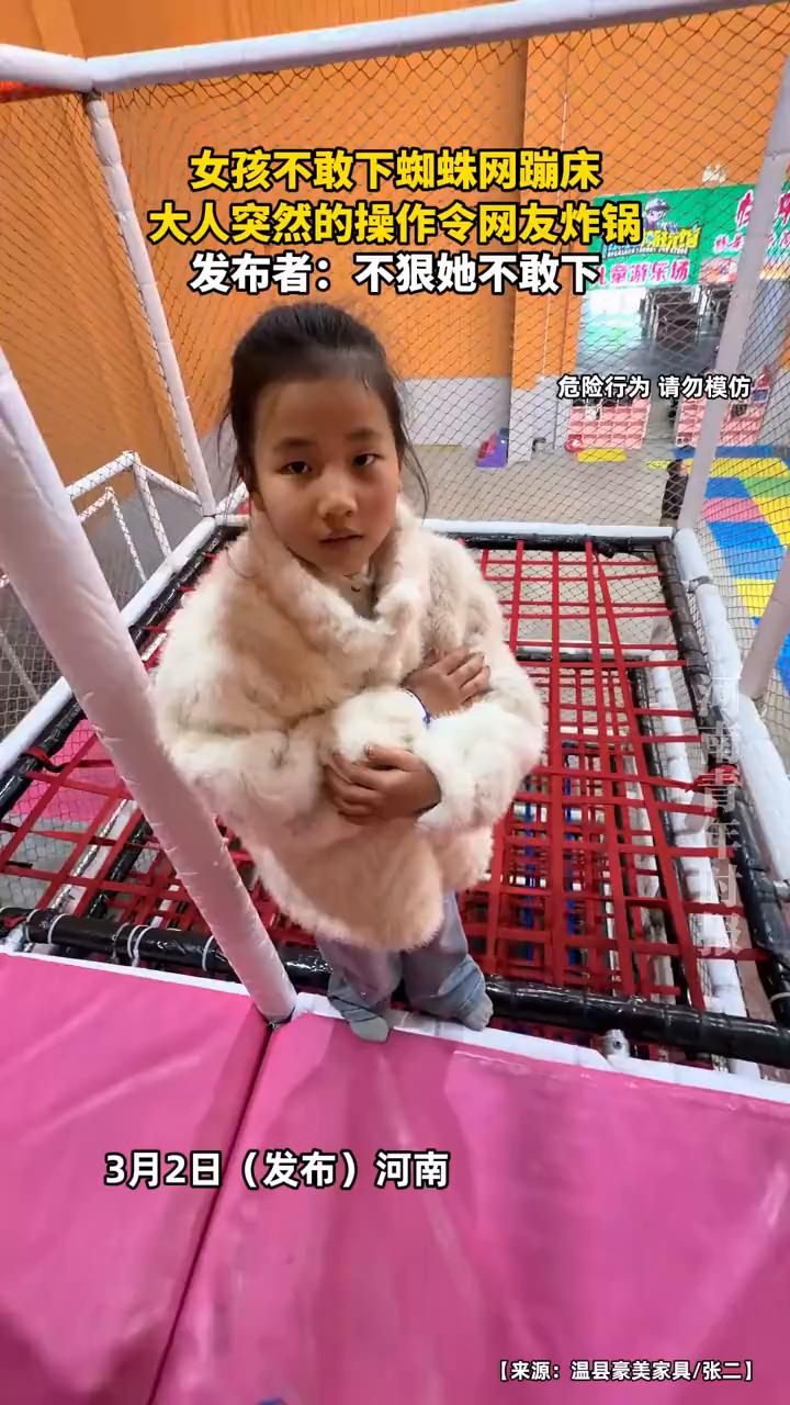 不敢下蜘蛛网蹦床大人。 网友炸锅发布者不狠不敢下。