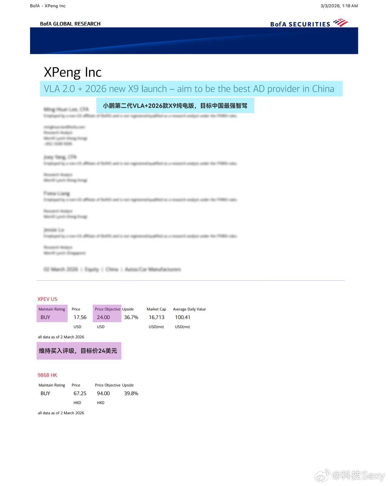 今天是入手小鹏股票的好机会啊!对于小鹏第二代VLA的惊艳表现,摩根士丹利、美国银行、汇丰银行在内的多家全球头部券商强推小鹏,给出“买入”评级。大摩称特斯拉FSD将面临小鹏直接竞争